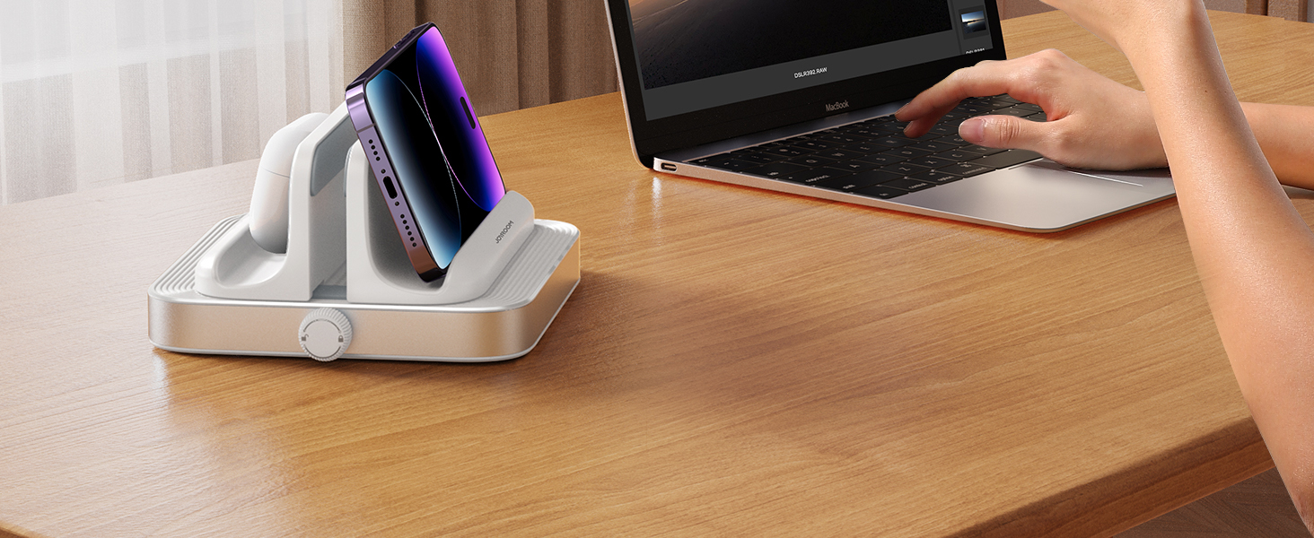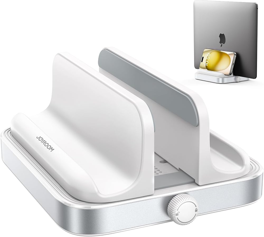 تصميم 3 في 1: يتميز حامل الكمبيوتر المحمول العمودي JOYROOM بوظائف تخزين متعددة لدعم أي ثلاثة أجهزة. على عكس حوامل الكمبيوتر المحمول البلاستيكية المعقدة الأخرى، فإن حامل الكمبيوتر المحمول ذو التصميم البسيط وسهل الاستخدام من JOYROOM لا يحافظ فقط على مساحة العمل الخاصة بك منظمة وتعمل بكفاءة، بل يزيد من استخدام مساحة سطح المكتب القيمة ولكن الأهم من ذلك أنه يستعيد الملمس الأصلي لجهازك.