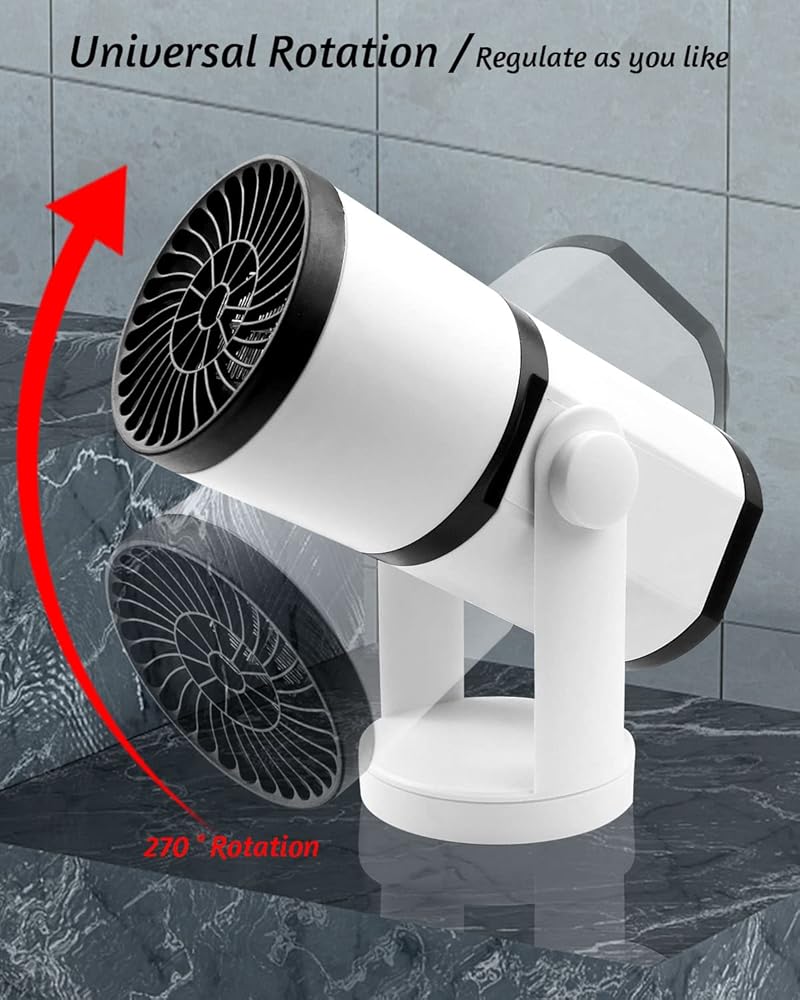 • زاوية ضبط سهلة: يحتوي السخان المحمول للسيارة على قاعدة دوارة 360 درجة، يمكنك ضبطه بسهولة على الزاوية التي تحتاجها، مما يسمح للهواء الدافئ بالنفخ في المكان الذي تريده، وأكثر راحة وراحة.
