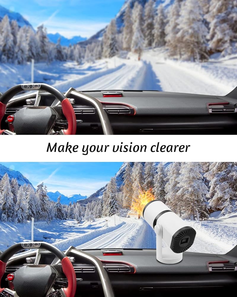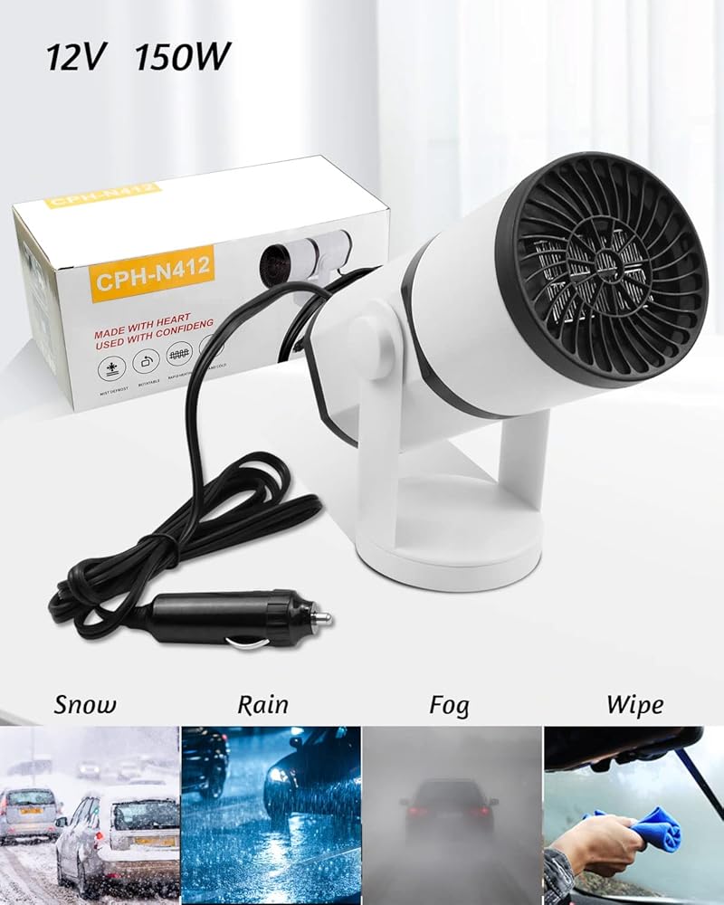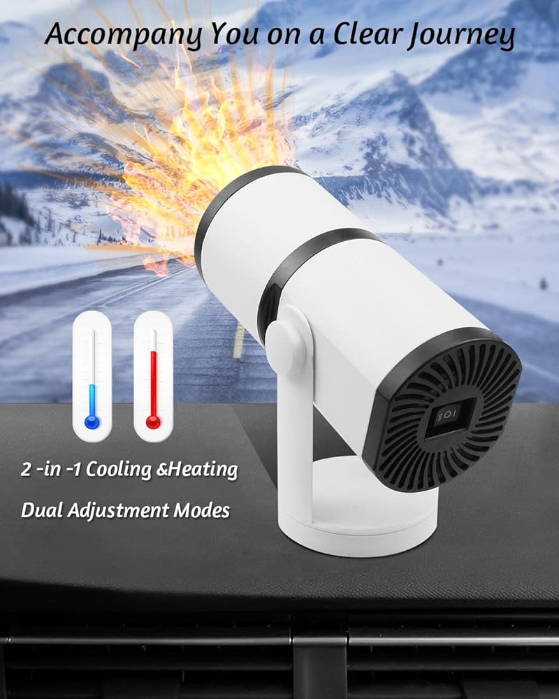 • تسخين وتبريد 2 في 1: تسخين/تبريد الهواء بسرعة من أجلك، حل مشكلة الضباب والصقيع على الزجاج الأمامي للسيارة بشكل فعال، مناسب لأي موسم، لا يقتصر على الشتاء فقط، يمكن للصيف أيضًا استخدام الرياح الطبيعية كمروحة للتبريد أنت أسفل، تجلب الراحة لسفرك