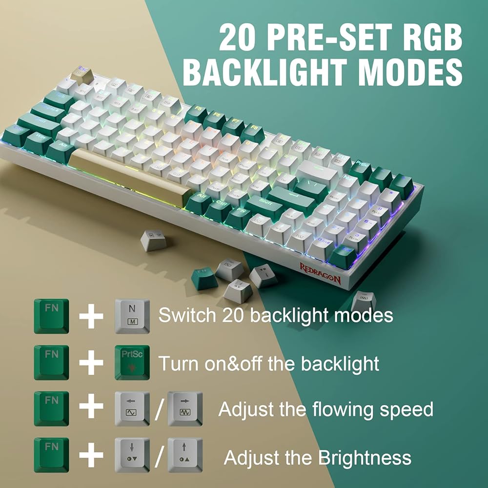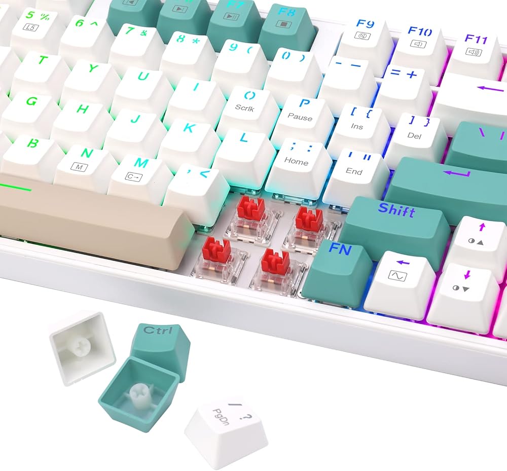 • لوحة مفاتيح ميكانيكية بمفاتيح حمراء، تتميز بمسافة خطية وقوة زنبركية قليلة، مما يؤدي إلى ضغط مفاتيح ناعم كالحرير. تسمح لك مقابس التبديل السريع بتبديل المفاتيح وترقيتها ومزجها بسهولة دون لحام.