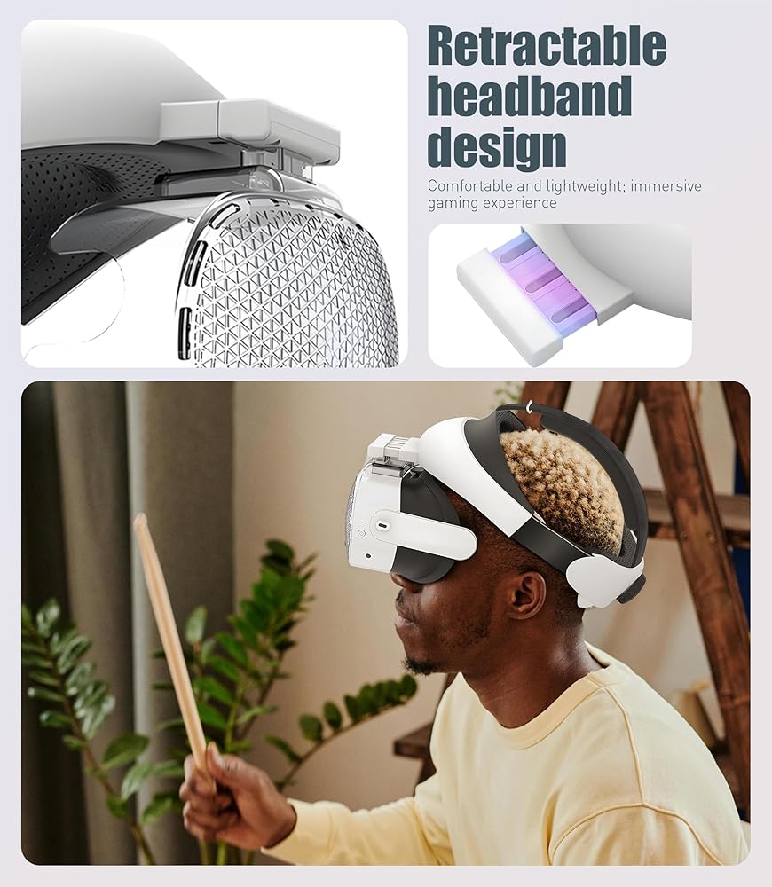 • تصميم فريد: مصمم خصيصًا لـ Quest 3S. بديل لحزام Elite. حزام صلب ممتاز يعزز الثبات وبيئة العمل أثناء اللعب. يمكن لعصابة الرأس القابلة للتعديل تقليل ضغط الرأس والحصول على تجربة واقع افتراضي أفضل