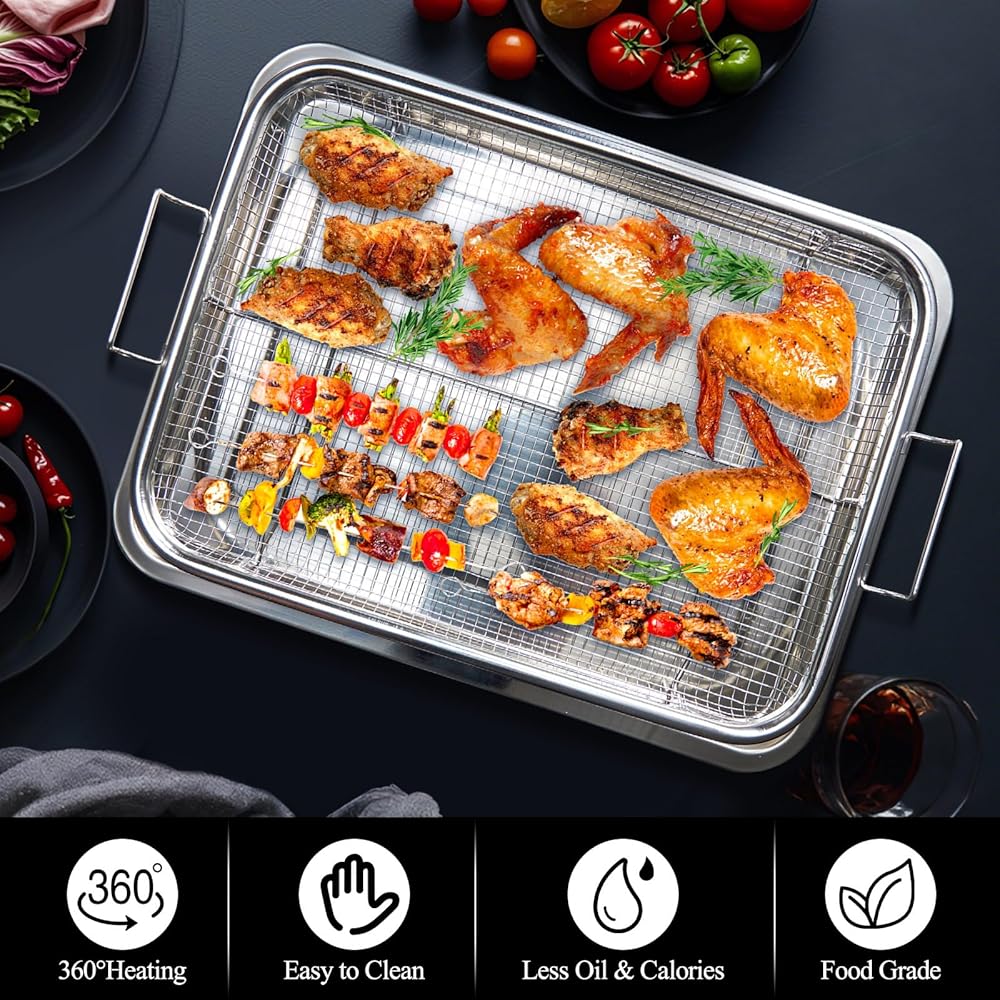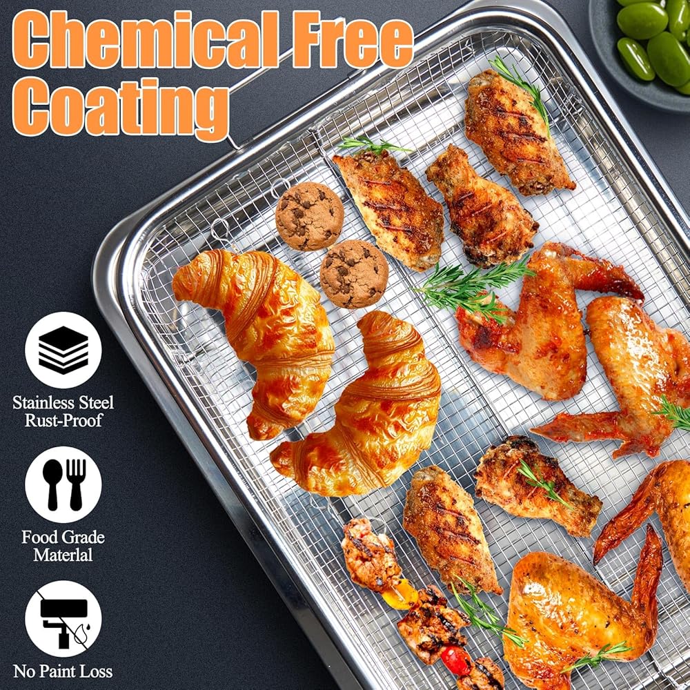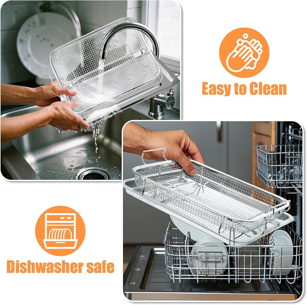 【آمن للاستخدام في غسالة الأطباق】رف الفرن الخاص بنا مصنوع من مواد غير سامة عالية الجودة ومتينة بدرجة الطعام، ومقاوم للحرارة 304 من الفولاذ المقاوم للصدأ، وآمن للاستخدام في غسالة الأطباق.