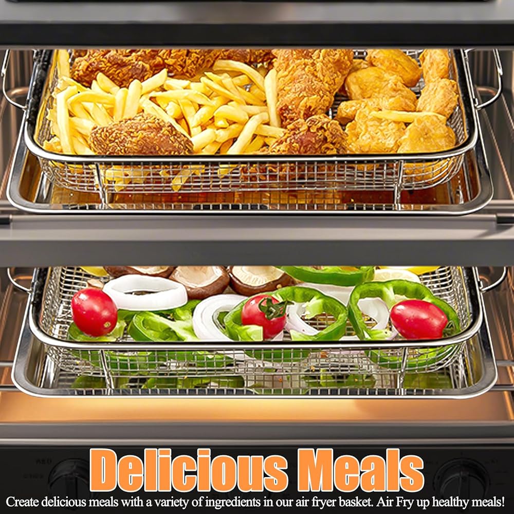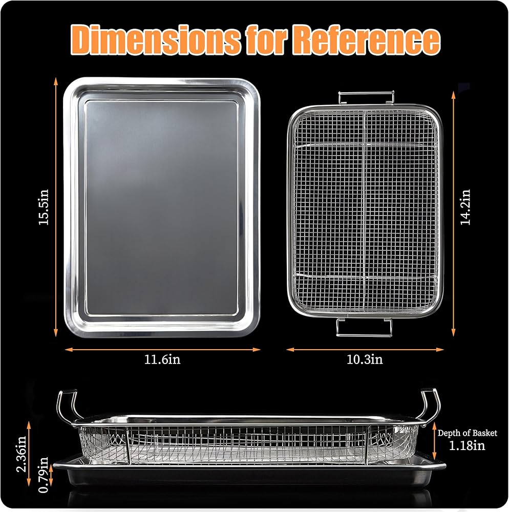 【سلة مقلاة هوائية للفرن】12.8 × 9.6 × 2.1 بوصة. عمق السلة: 1.18 بوصة. سعة تخزين الفرن كبيرة بما يكفي لاستيعاب الكثير من الطعام، وحجمه يناسب الفرن جيدًا. يرجى الرجوع إلى الصورة للحصول على التفاصيل.