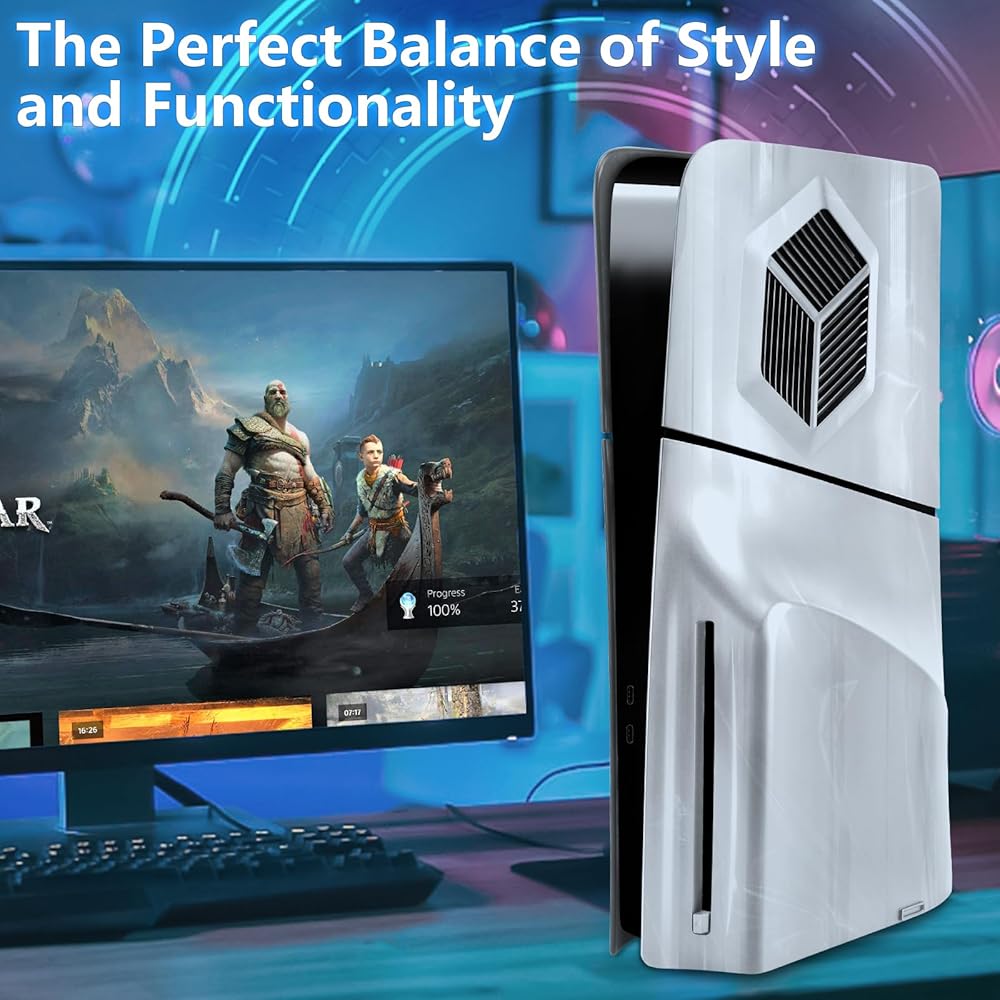 • 💦 【تصميم نافذة التهوية 】 يتميز PS5 Slim Skin بتصميم نافذة تهوية متكاملة لإبقائك منتعشًا أثناء جلسات الألعاب المكثفة. تحتوي لوحة الغطاء النحيفة لجهاز PS5 على فتحات على كلا الجانبين لتعزيز تدفق الهواء ومنع ارتفاع درجة الحرارة وضمان الأداء السلس. يمكنك اللعب لساعات دون القلق بشأن درجات حرارة وحدة التحكم. لا يساعد التصميم جيد التهوية على إطالة عمر جهاز PS5 Slim فحسب، بل يحافظ أيضًا على تجربة اللعب الخاصة بك مثالية حتى أثناء جلسات اللعب الطويلة.