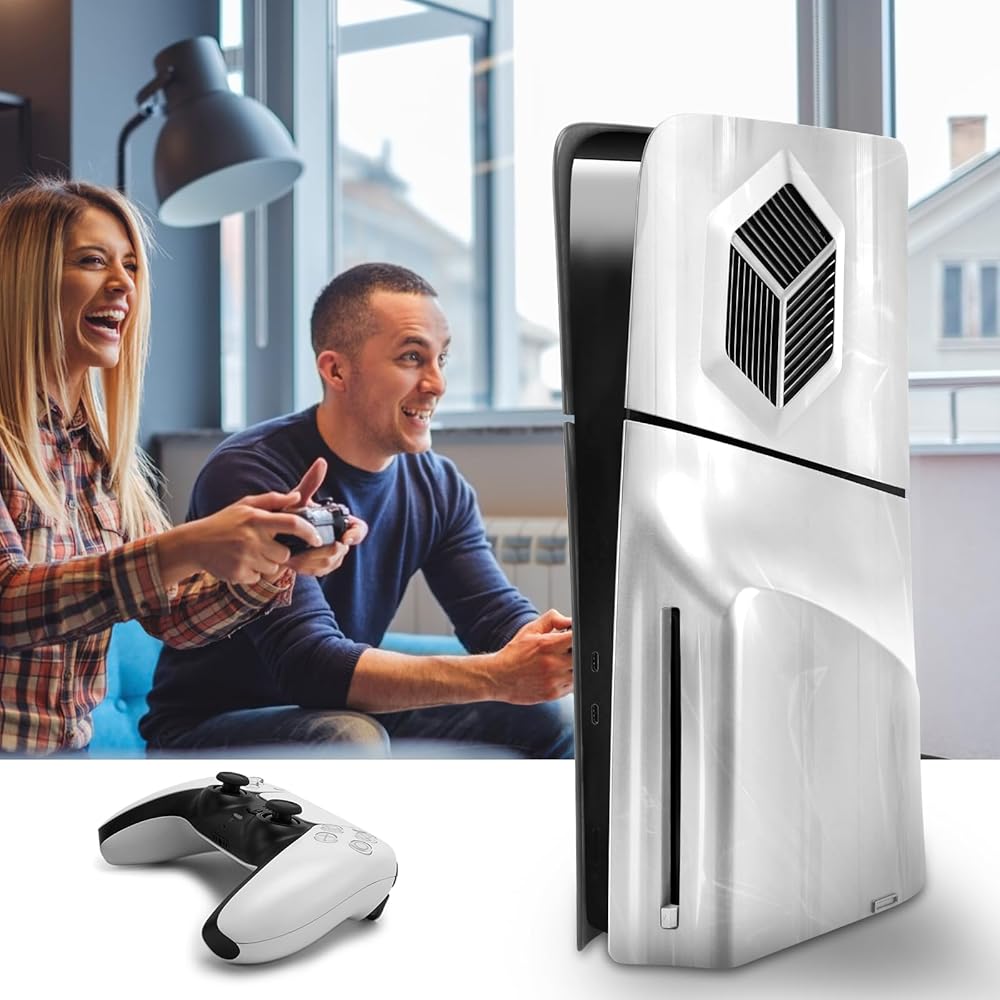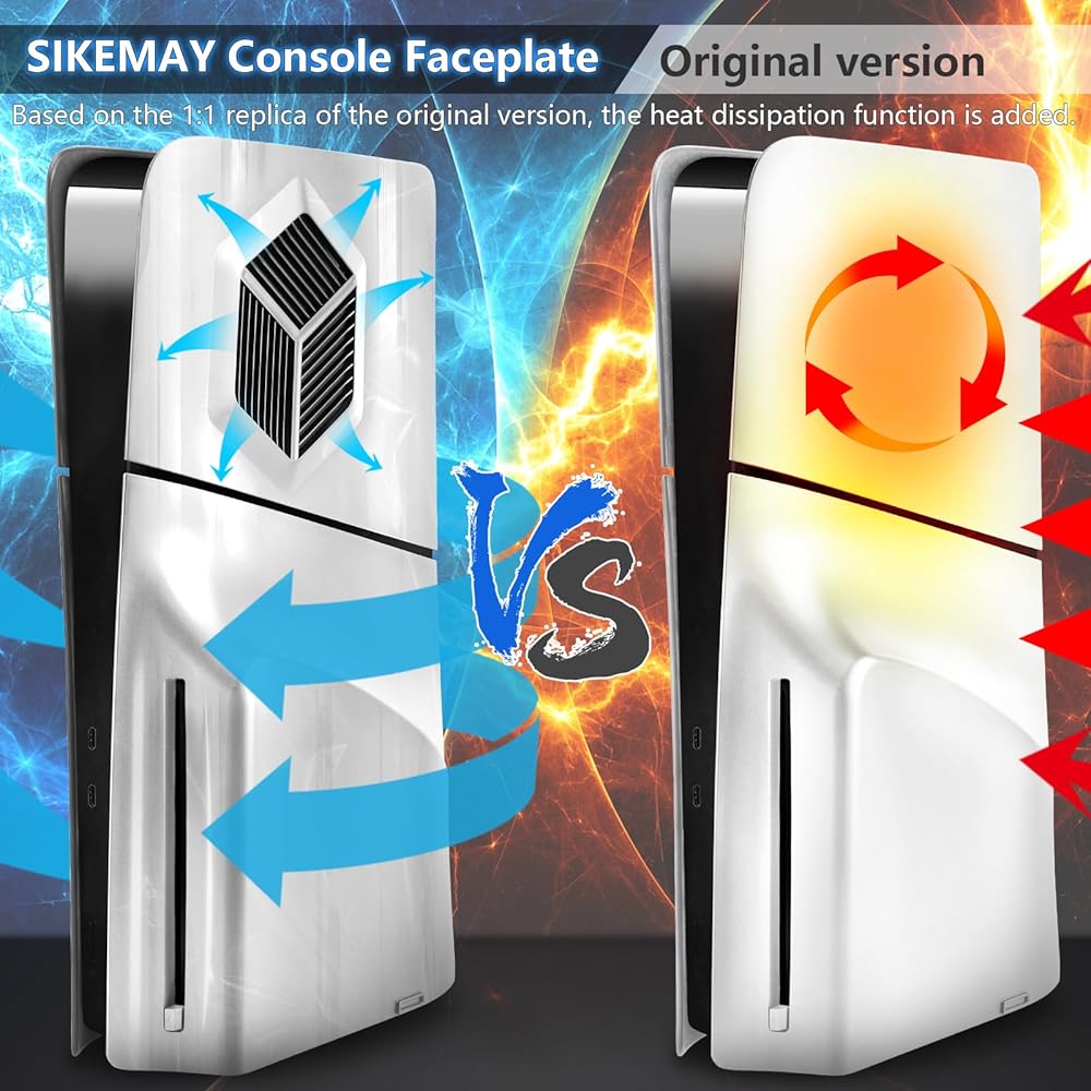 ملحقات لوحات غطاء وحدة التحكم PS5 النحيفة المتوافقة مع إصدار قرص PlayStation 5 النحيف مع فتحات تبريد، SIKEMAY 2023 ألواح جانبية منفصلة مقاومة للغبار/لوحة أمامية/جلد/غطاء - فضي