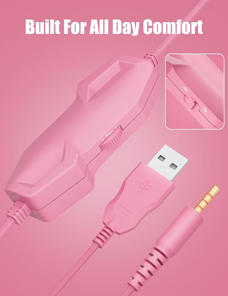 【تحكم سهل في مستوى الصوت】كابل مجدول مضاد للالتواء بقوة شد عالية، وحدة تحكم مركزية مع تحكم دوار في مستوى الصوت وكتم صوت زر للميكروفون، تحكم سهل في متناول يدك، اتصال USB فقط لإضاءة مصابيح LED المبهرة