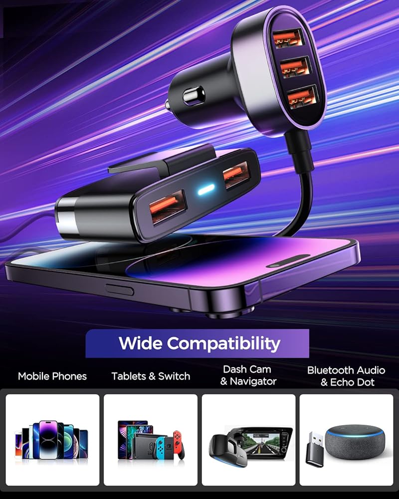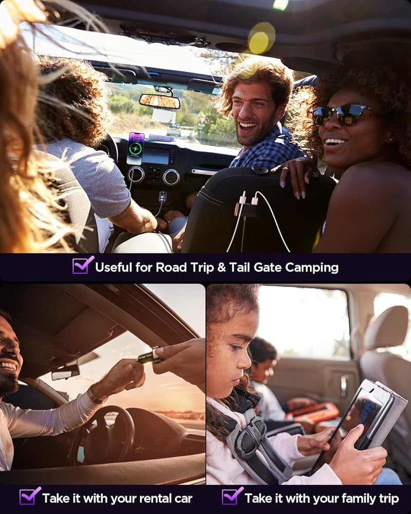 📱توافق عالمي: متوافق مع جميع الأجهزة الإلكترونية التي تدعم مراقبة الجودة، وشاحن السيارة لهواتف iPhone وAndroid، وأجهزة iOS وWindows اللوحية، وبنوك الطاقة، وأجهزة التحكم في ألعاب الفيديو، والساعات الرياضية، والكاميرات، وغيرها من الأجهزة التي تعمل بالطاقة USB. عالمي للمركبات 12-24 فولت يتكيف مع أنواع المركبات السائدة مثل السيارات وسيارات الدفع الرباعي والشاحنات والطرق الوعرة.