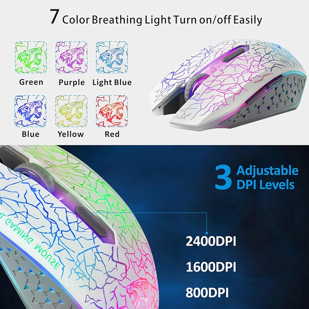 تتبع ثابت ودقيق: تقنية 2.4G اللاسلكية المتقدمة الخالية من التأخر تسمح بمسافة عمل تصل إلى 10 أمتار، وتوفر نقل لاسلكي مستقر. مفتاح حر 800/1600/2400 CPI لتلبية احتياجاتك بدقة عالية.
