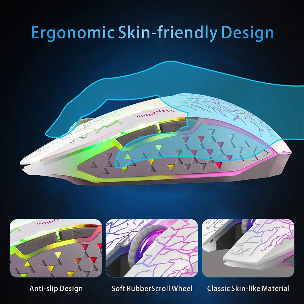 إضاءة LED باردة وناعمة: 7 ألوان مختلفة تتغير بشكل عشوائي أثناء الاستخدام، مما يوفر إضاءة محيطة مهدئة، مما يخلق جوًا رائعًا ورائعًا للعمل والألعاب. يمكن إيقاف تشغيله بواسطة مفتاح الإضاءة السفلي إذا لم تكن بحاجة إليه.
