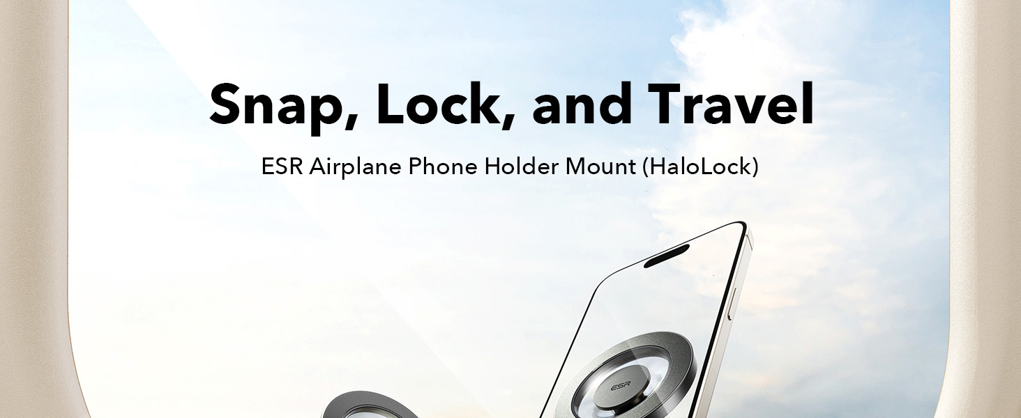 ESR لحامل هاتف الطائرة MagSafe، أساسيات السفر بالطائرة، حامل هاتف السفر المحمول، حامل هاتف الطائرة المغناطيسي مع حلقة معدنية لهاتف iPhone 16 Pro Max 15 14 13 12، Samsung، Android