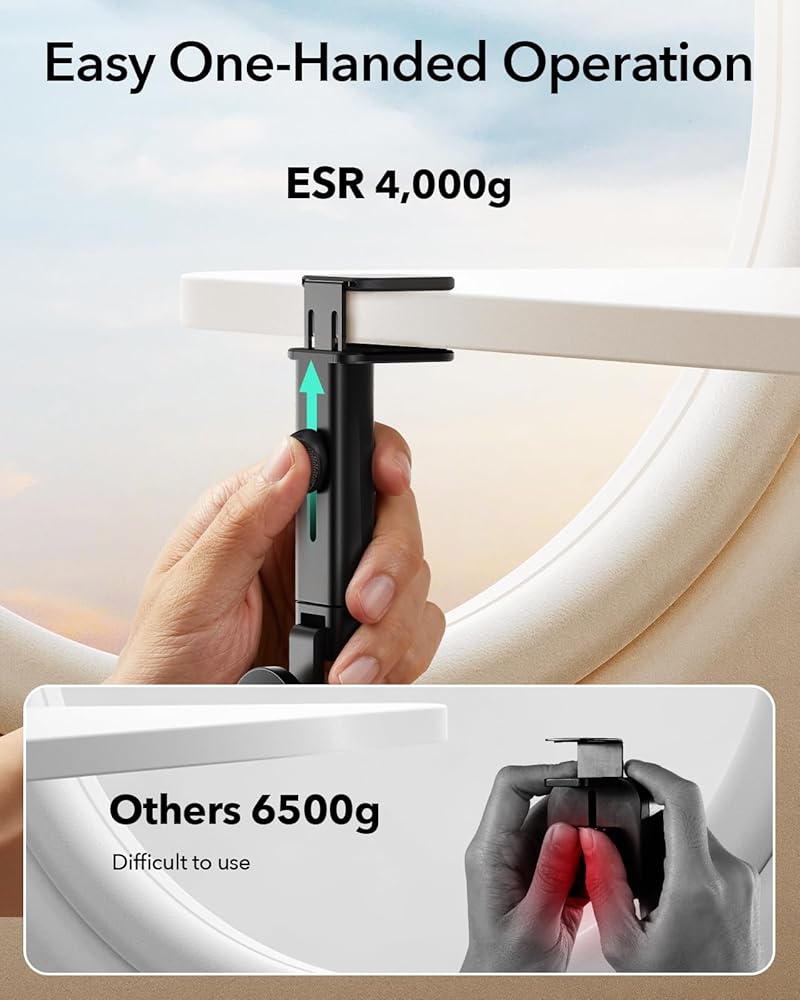 حامل هاتف متعدد الزوايا: يوفر حامل الهاتف هذا للمكتب تعديلين للزاوية - 360 درجة عند الذراع و180 درجة عند الطي - بينما يسمح الحامل المغناطيسي للهاتف بالدوران بحرية 360 درجة، مما يضمن زاوية رؤية مريحة وسهولة التبديل بين الشاشات الأفقية والعمودية.