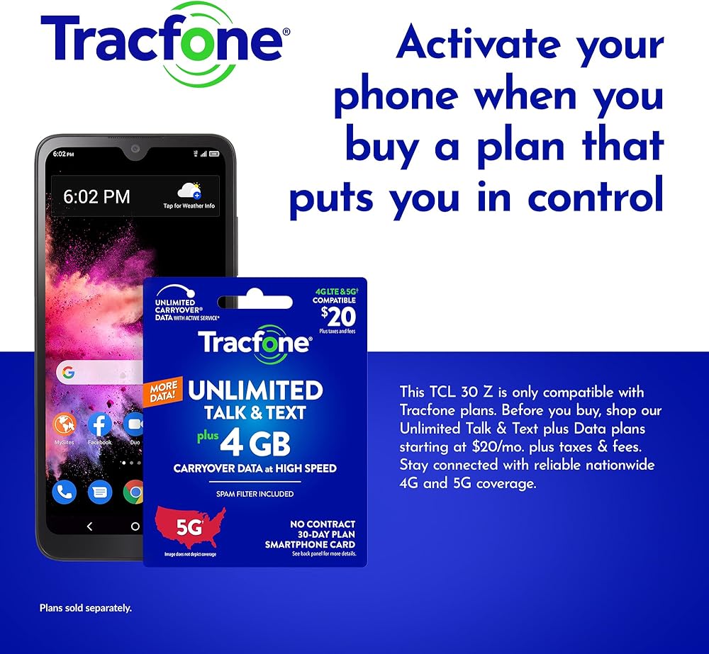 The TCL 30 Z from Tracfone is your go-to tool for getting things done. Get a single line unlimited talk & text plan starting at only $20/month plus taxes and fees with no contract. To activate this device, a Tracfone plan is required. Shop for the TCL 30 Z online today.