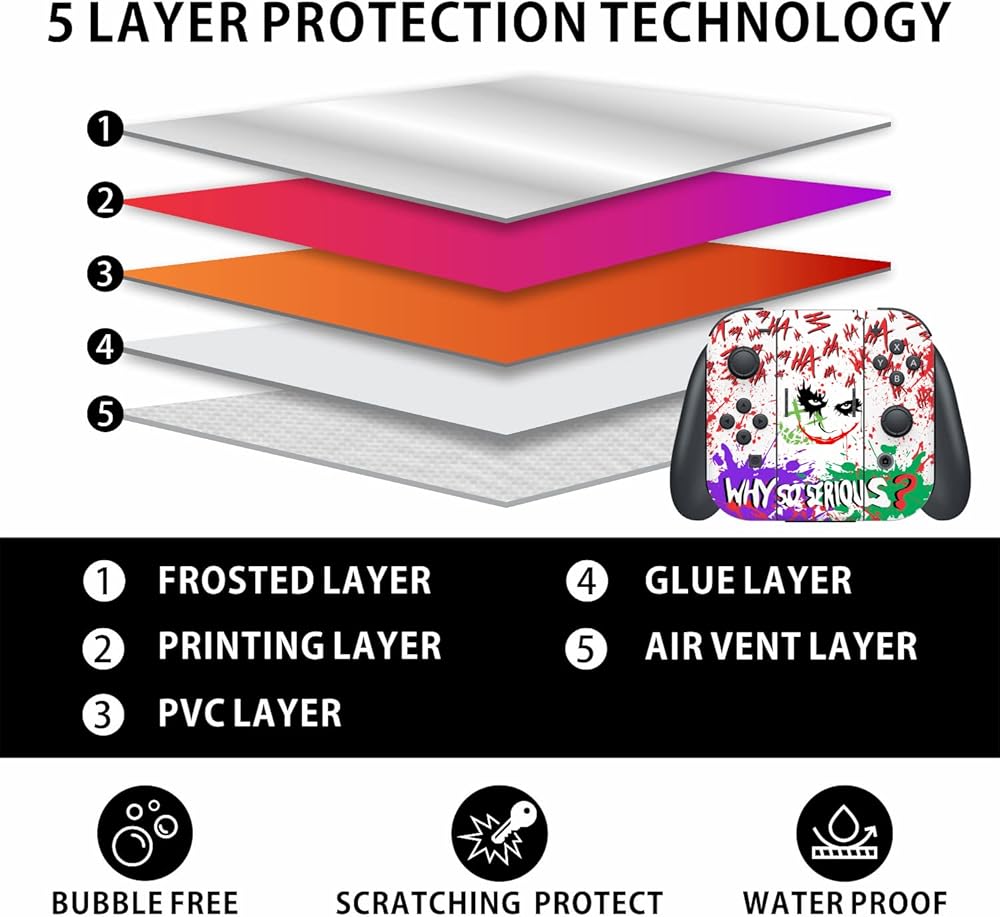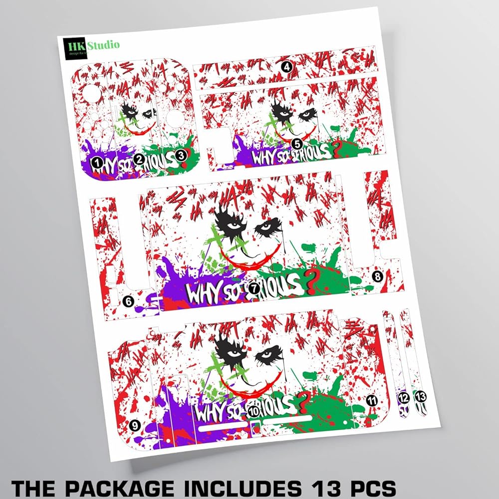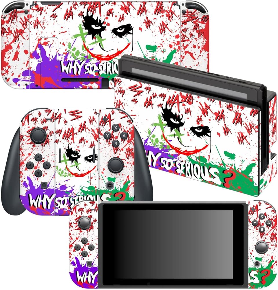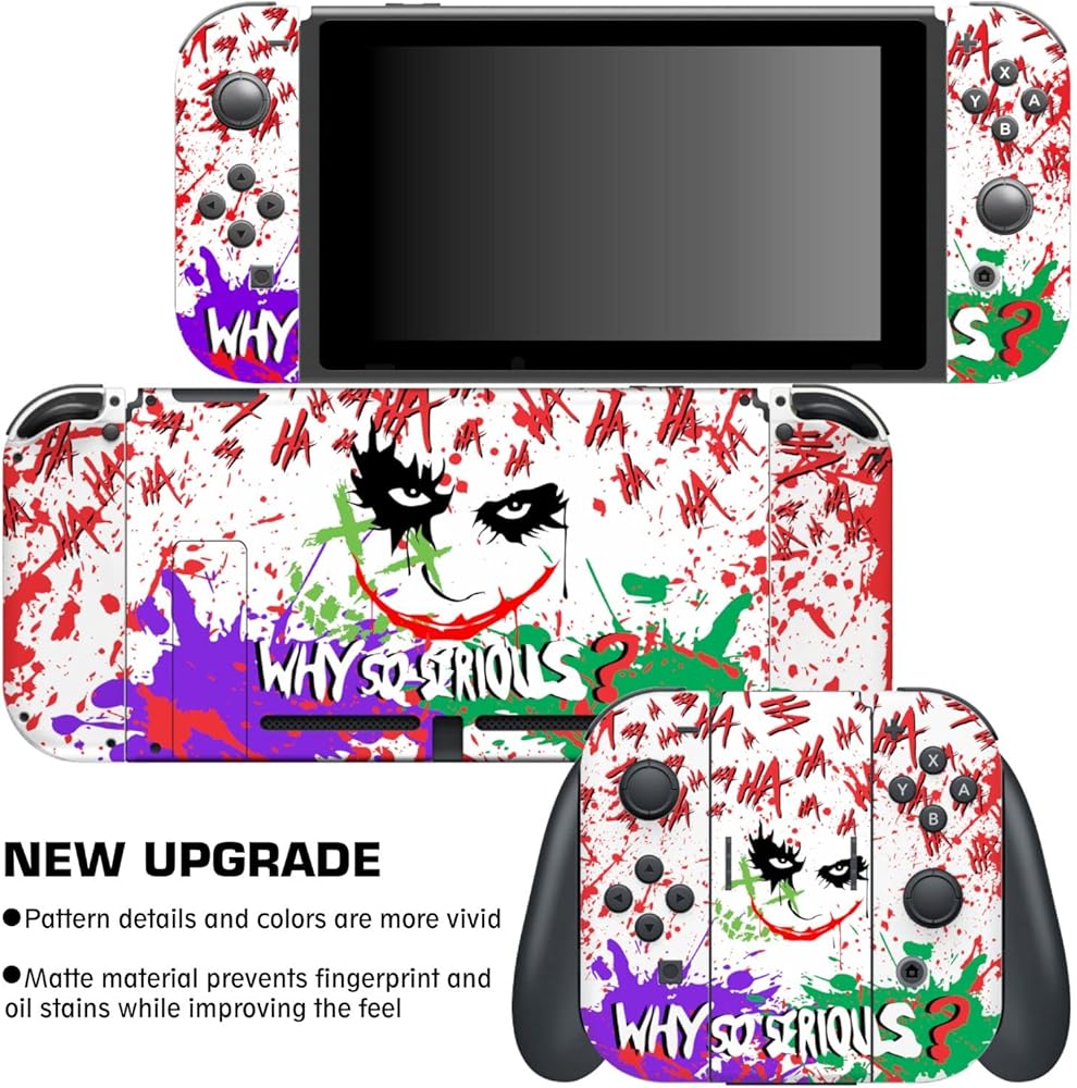 أغلفة تبديل وحدة التحكم في الألعاب من HK Studio - ملصقات تبديل وحدة التحكم في ألعاب المهرج الفنية بدون فقاعات، مقاومة للماء - غطاء تغليف لوحدة التحكم في الألعاب - بما في ذلك الجلد لأدوات Joy-Cons، وقاعدة الإرساء، والمقبض ووحدة التحكم