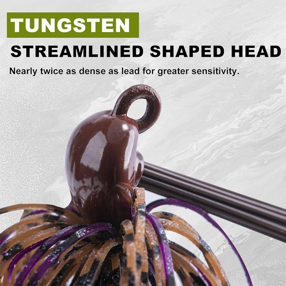 رؤوس تهزهز التنغستن: خطافات رأس الرقصة مصنوعة من التنغستن. نظرًا لكثافة التنجستين العالية، تحافظ رؤوس التنجستين على الوزن مع وجود حجم أصغر مما يعني أنها تعمل بشكل أفضل في الأغطية الثقيلة/الأعشاب الضارة وسوف يكون بها عدد أقل من التعليق. والتنغستن أكثر حساسية بكثير، مما يساعدك على اكتشاف حتى أدق اللدغات