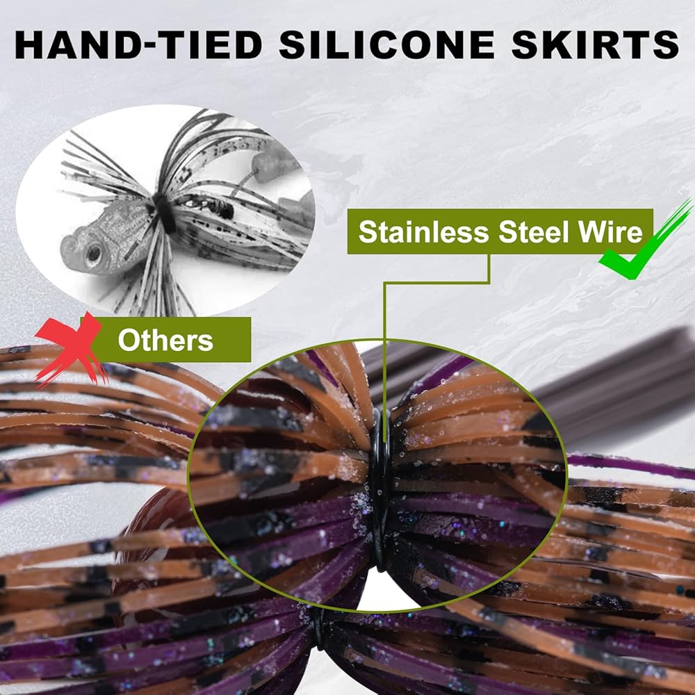 تنانير سيليكون ملونة زاهية: تم ارتداء تنانير صيد السباحة بتنانير سيليكون ناعمة وملونة، مما يوفر حركة سباحة جذابة. تعمل التنورة النابضة بالحياة على تحسين رؤية طُعم الصيد وحركته، مما يجذب المزيد من الضربات. هذه التنانير المصنوعة من السيليكون الكثيفة تخفي الخطافات بشكل فعال، مما يسهل على الأسماك الإمساك بالطعم