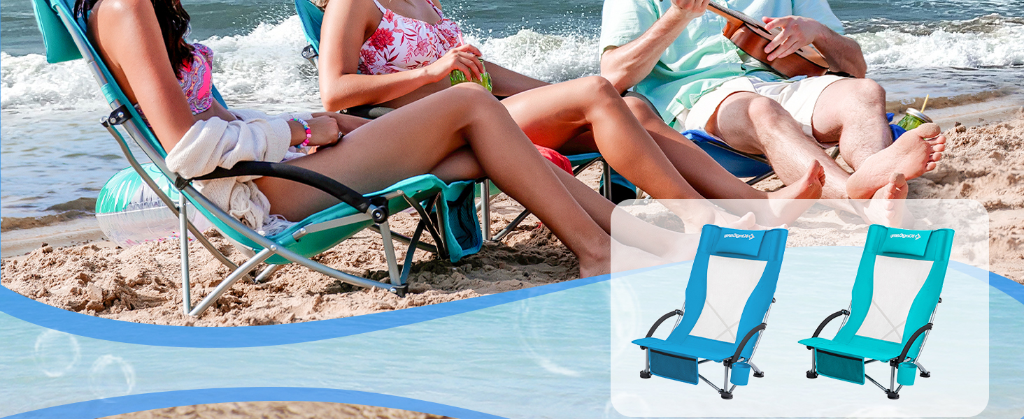 • تصميم فريد: يتميز كرسي الشاطئ هذا بظهر شبكي ناعم؛ بالمقارنة مع كرسي الشاطئ العادي، فهو أكثر برودة وجيد التهوية؛ ويحتوي هذا الكرسي على مسند رأس يدعم رأسك بالكامل