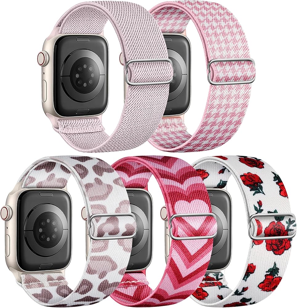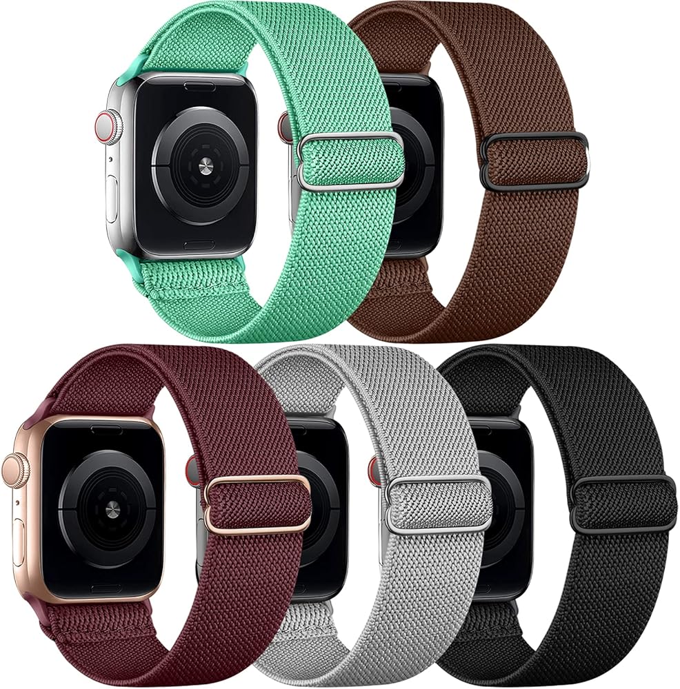 5 حزمة مسطّحة نايلون نطاق متوافق مع نطاقات Apple Watch 40mm 41mm 42mm 44mm 45mm 46mm 49mm 38mm للنساء ، حزام حلقة منفرد مضفر مرن لـ iWatch se ultra 2 1 ، السلسلة 10 9 8 7 6 5 4 3 2 1