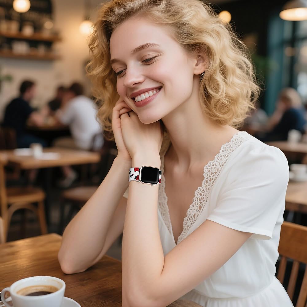 • سهلة الضبط - الشيء الجيد في أحزمة iWatch الخاصة بنا هو أنها تأتي مع أحزمة مرنة وقابلة للتعديل. كما أنها تتميز بإبزيم منزلق من الفولاذ المقاوم للصدأ يسمح لك بتعديل حجم الحلقة. عند ممارسة التمارين، تحافظ أحزمة الساعة المتوافقة مع Apple Watch على ساعتك بشكل مريح على معصمك للحصول على قراءات أفضل للتمرين. إنه مرن للغاية، مما يجعل من السهل ارتداؤه أو خلعه.