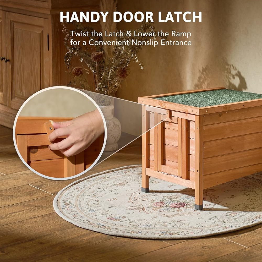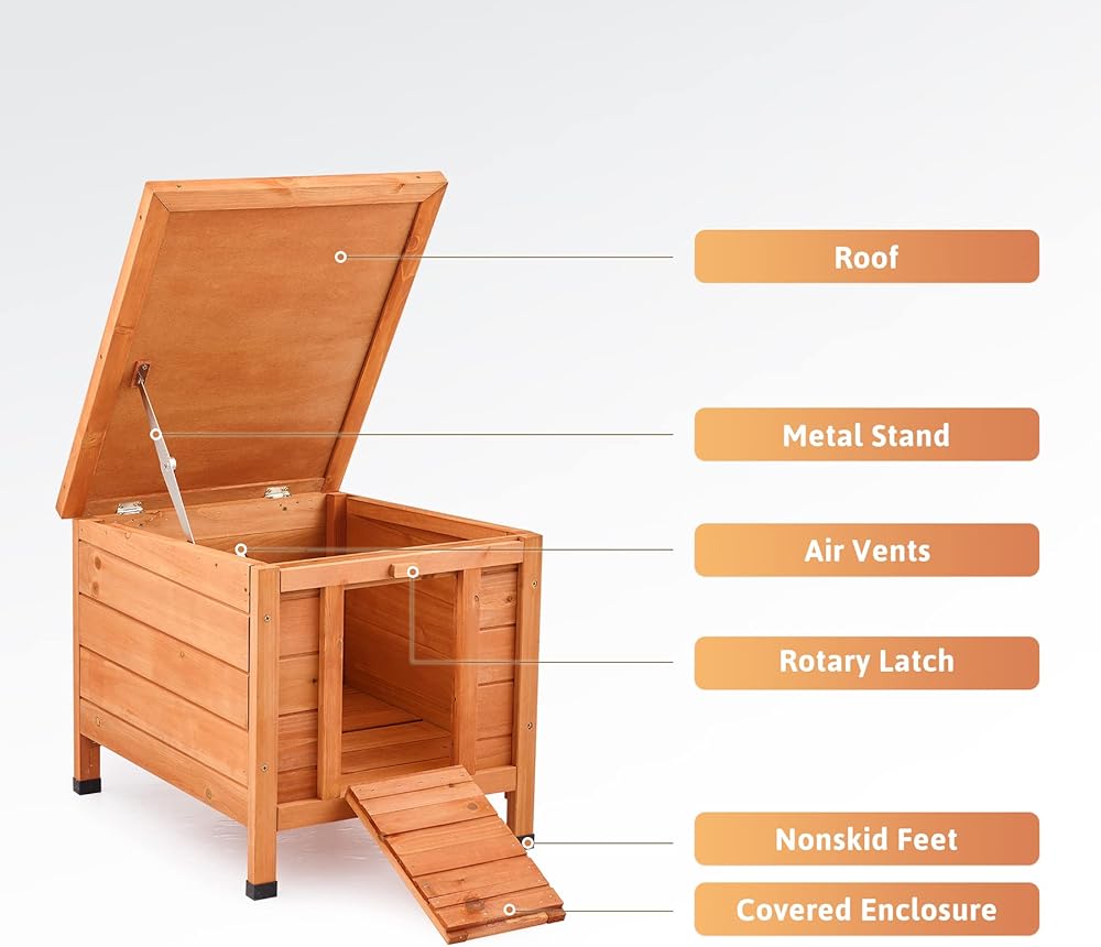تصميم صديق للحيوانات الأليفة: مثالي للأرانب والخنازير الغينية والبط والدجاج والسلاحف وحتى القطط في الهواء الطلق، يوفر صندوق الحيوانات الأليفة هذا مأوى آمنًا للراحة والنوم مع سقف مقاوم للعوامل الجوية ومنحدر لطيف يمكن استخدامه كباب عند إغلاقه