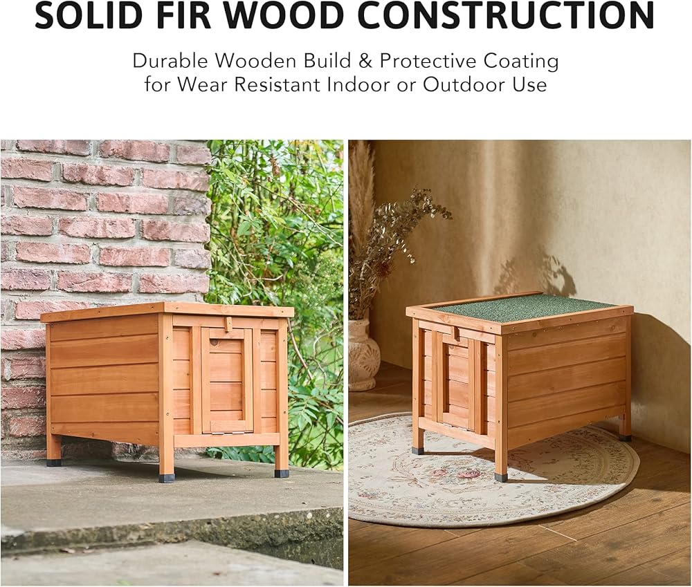 هيكل متين: مصنوع من خشب التنوب القوي والمرن المطلي بطلاء غير سام، بيت الأرنب كو-زد هذا محمي من التآكل والتمزق اليومي في أي نوع من الطقس ومناسب للاستخدام الداخلي أو الخارجي المغطى