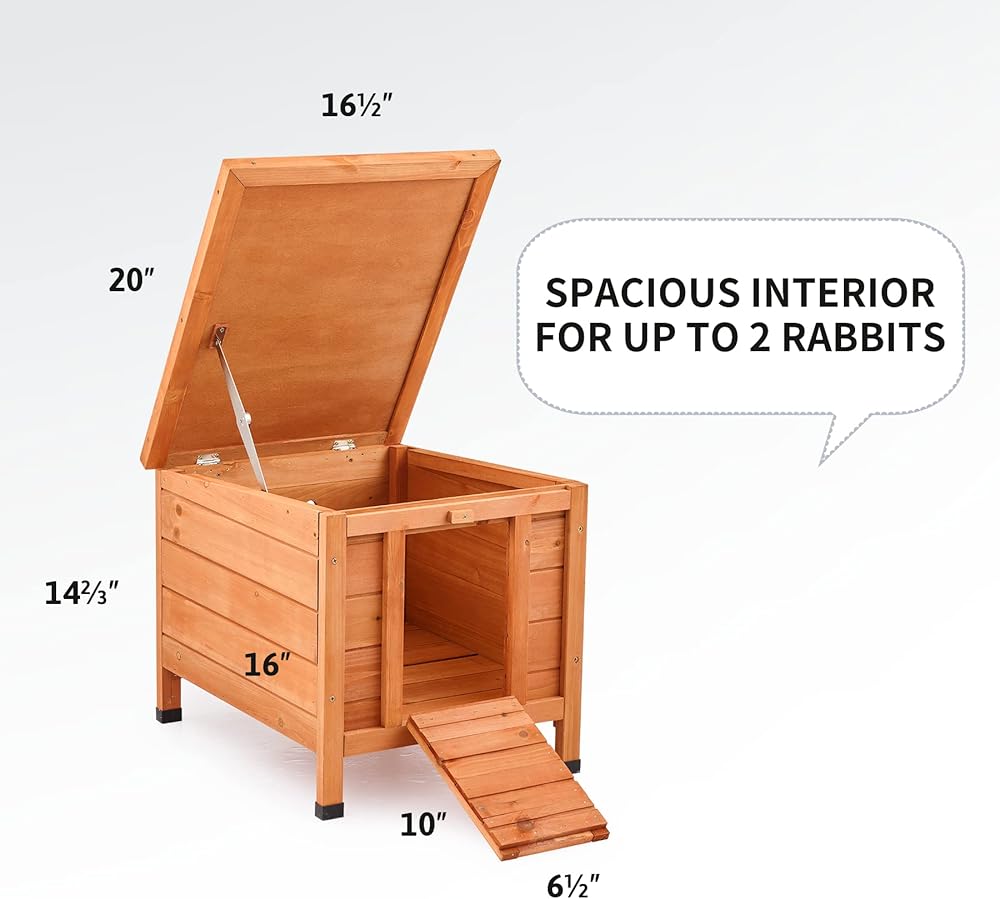 منزل مريح ومريح: يتميز القفص الأرنب المرتفع مقاس 16.5 انش × 20 انش × 15.8 انش بغرفة واسعة بطول 14.6 انش مع سقف معزول مقاوم للماء لحيواناتك الأليفة للاختباء والاسترخاء والنوم؛ يفتح باب السقف ويغلق لسهولة التنظيف واسترجاع الألعاب المكتنزة