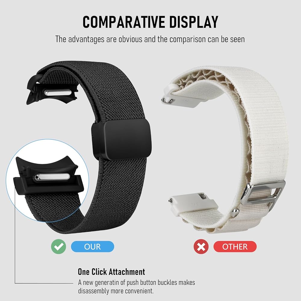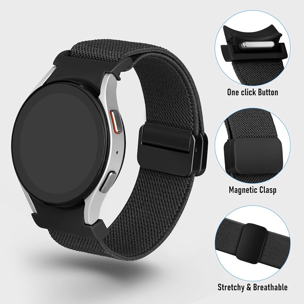 【خدمة عبر الإنترنت على مدار 24 ساعة】: سوف تحصل على شريط مغناطيسي من النايلون بنقرة واحدة لساعة Samsung galaxy watch 7 6 5 4 FE. إذا كانت لديك أي أسئلة حول الحزام الخاص بنا، فلا تتردد في الاتصال بنا وسوف نقوم بحل المشكلة في أقرب وقت ممكن حتى تشعر بالرضا