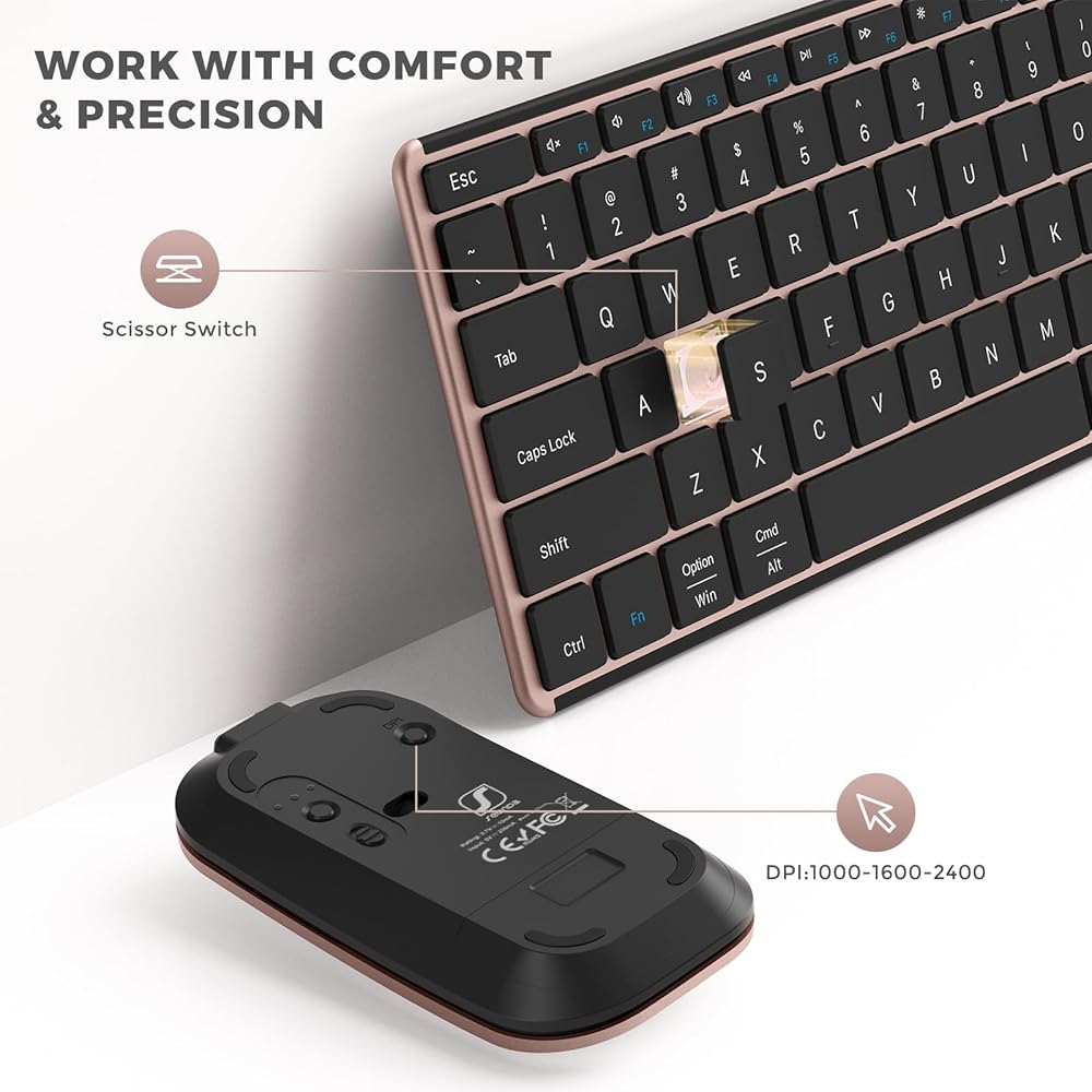 العمل مع الراحة والدقة: تعتمد لوحة المفاتيح على هيكل مفتاح المقص، مما يوفر تجربة كتابة هادئة للغاية. يوفر الماوس ثلاثة أوضاع DPI: 1000/1600/2400، مما يسمح لك بالتعديل للحصول على تحكم أكثر دقة وفقًا لاحتياجاتك