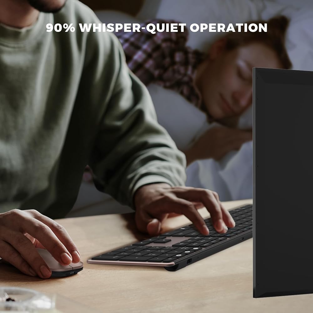 حجم كامل وتصميم نحيف للغاية: تتضمن لوحة المفاتيح كاملة الحجم لوحة مفاتيح رقمية ومفاتيح وظائف مخصصة، مما يضمن الكتابة الفعالة. يضيف المظهر الجانبي النحيف لمسة من الأناقة إلى مساحة العمل الخاصة بك، بينما يجعل التصميم خفيف الوزن من السهل حملها