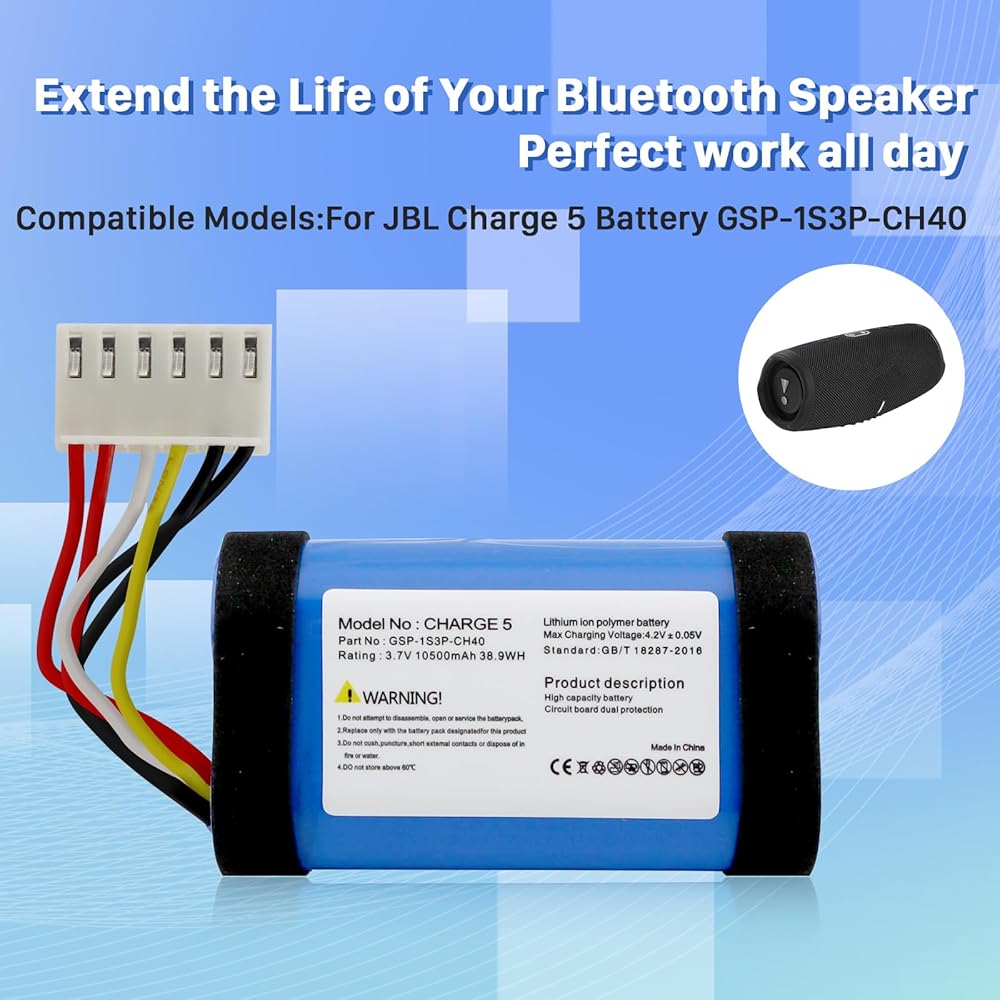 🎶【نموذج متوافق】: استبدال بطارية jbl Charge 5 متوافق مع JBL Charge 5 GSP-1S3P-CH40، CH4A، 1AA011NA مكبر صوت بلوتوث مقاوم للماء.