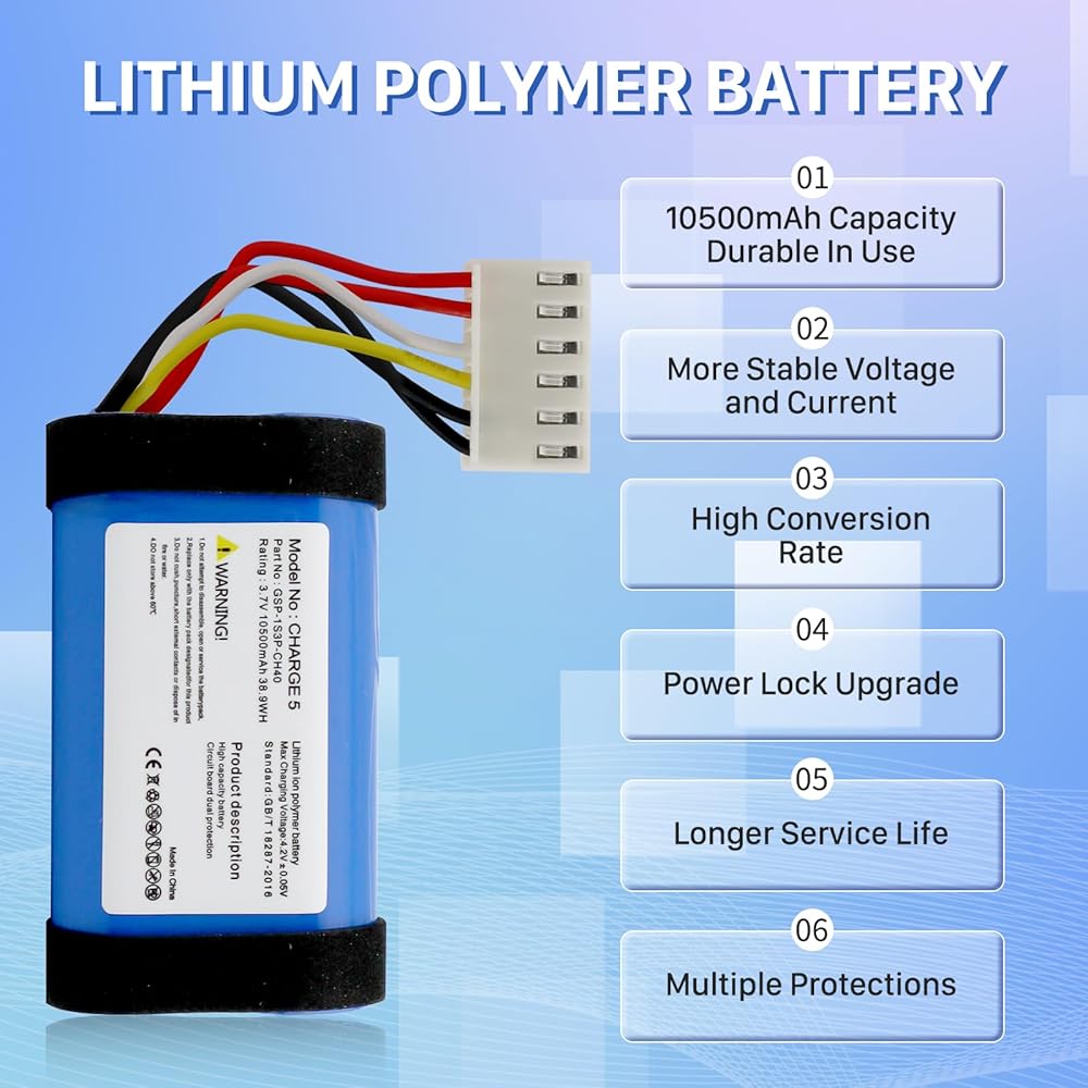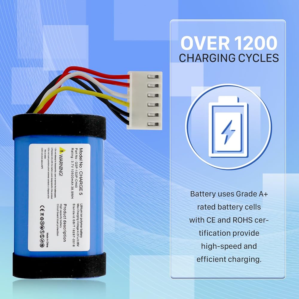 🎶【ضمان الجودة العالية】: بطارية بديلة jbl Charge 5 الخاصة بنا حاصلة على شهادة UL وCE وRohs، وتستخدم خلايا بطارية مصنفة من الدرجة A+. يتم تصنيع كل بطارية واختبارها وفقًا لمعايير مراقبة الجودة الصارمة. رقاقة مدمجة لمنع الشحن الزائد، والتفريغ الزائد، وقصر الدائرة، والسخونة الزائدة. حماية متعددة لتشغيل أكثر أمانًا لكل من المستخدم والأجهزة.