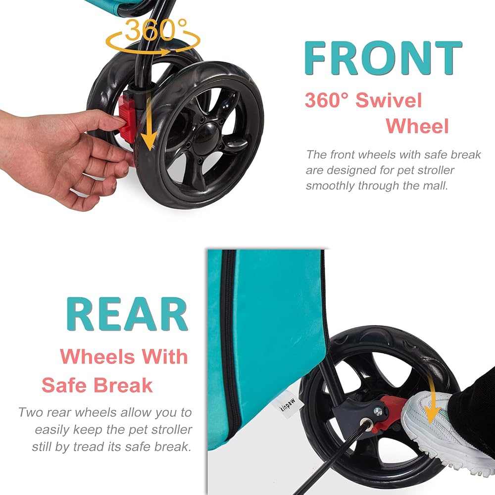 <p><b>[ ضمان القيادة السلسة ]</b> تم تجهيز إطارات EVA مقاس 5.9 بوصة بخاصية امتصاص الصدمات لامتصاص صدمات الرصيف مع توفير تجربة قيادة سلسة لحيواناتك الأليفة. عجلات أمامية مزدوجة القفل دوارة 360 درجة وعجلات خلفية نادرة آمنة مع نظام قفل تسمح لك بسهولة المناورة/الانتقال عبر مجموعة متنوعة من التضاريس المختلفة. استمتعي بالمشي السريع مع طفلك الصغير!</p>