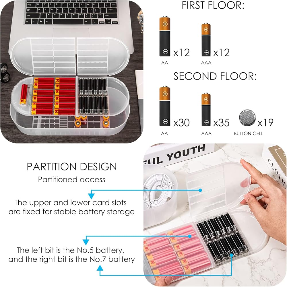 Battery holder organizer portable allows to safely and conveniently pack the battery in backpack, school bag, and travel, camping, etc.