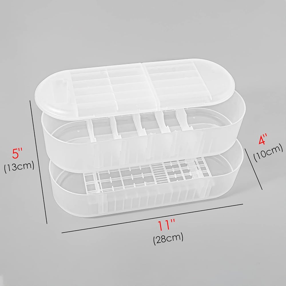 Three layer battery storage box dimensions: 11" x 4" x 5" (28cm x 10cm x 13cm)