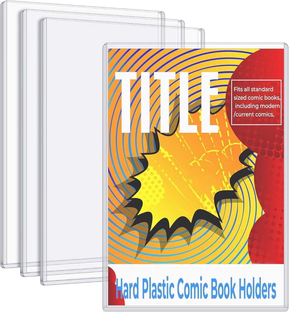 4 عبوات من حاملات الكتب الهزلية البلاستيكية الصلبة، وأكمام عرض الكتب الهزلية الشفافة الكريستالية الممتازة من مادة PVC ذات الحجم الحالي لحماية القصص المصورة الحديثة وتخزين مجلة القصص المصورة العادية لهواة جمع الأعمال الصغيرة