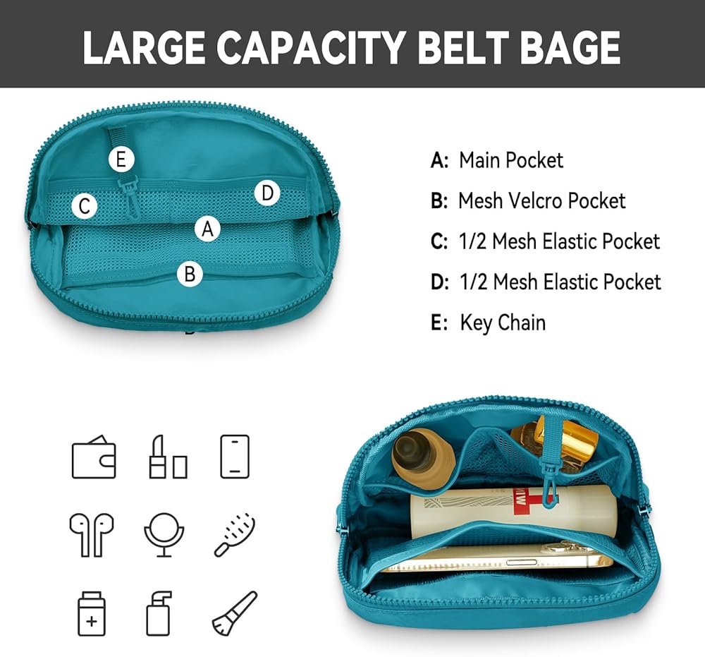 ✅4 ترقيات التصميم: تم تصميم حقيبة الحزام هذه في كل مكان لتوفير الراحة والملاءمة. 1: السحابات المزدوجة سهلة الاستخدام. 2: جيوب داخلية من الفيلكرو ستحافظ على بطاقاتك ونقودك آمنة؛ 3: المشبك على الحزام سوف يخفف النظارات الشمسية والمفاتيح؛ 4: سلسلة مفاتيح إضافية بالداخل ستساعدك على فتح الباب بسرعة.