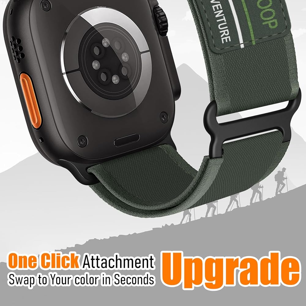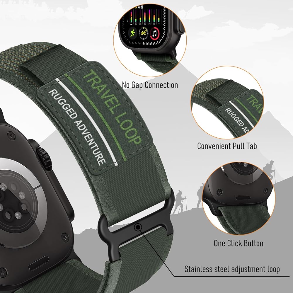 【مادة ممتازة】شريط نايلون متين لساعة التفاح مصنوع من مادة النايلون عالية الأداء. حلقة مسار لأحزمة ساعة أبل 49 مم 46 مم 45 مم 44 مم 42 مم للرجال قابلة للغسل ومتينة ومريحة في الارتداء وصديقة للبشرة وخفيفة الوزن.