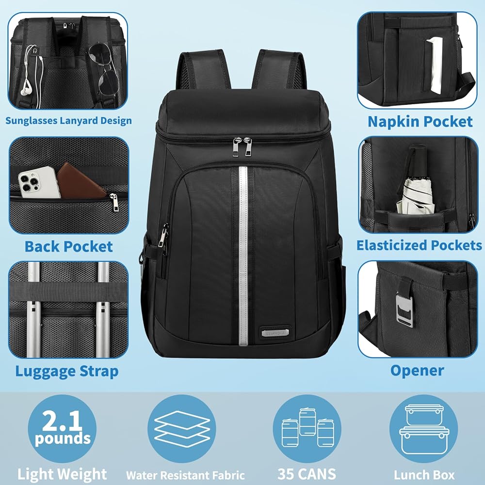 Insulated Leakproof Cooler Design: The inner insulation of the cooler backpack is thickened with foam and the leak-proof liner works together to keep cold for hours without worrying about leakage. The zipper is not leakproof, please be careful not to tip over when using it. The insulated cooler backpack is a perfect outdoor activities partner