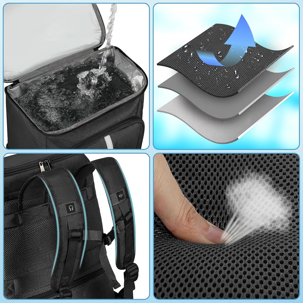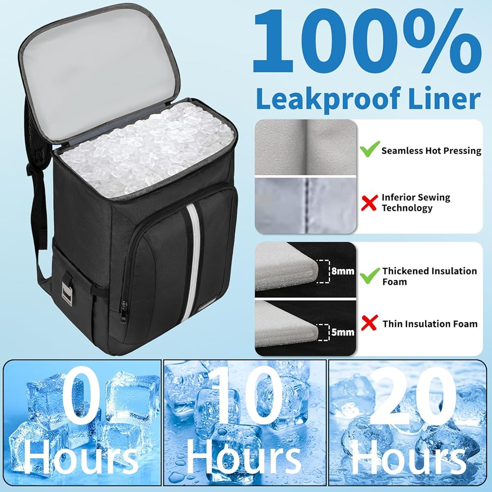 Insulated Cooler Backpack: High Density insulation thicken material and upgraded leak proof liner of the soft cooler backpack work together to make sure anti-leaking and keep hot cold for 20 hours. We recommend storing hot and cold and separately for better results