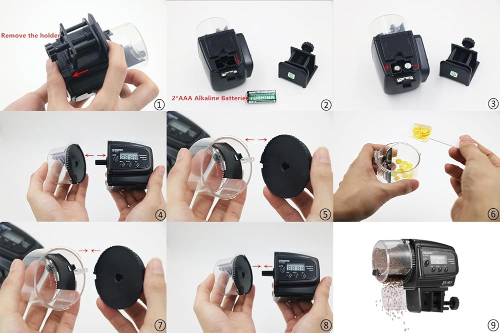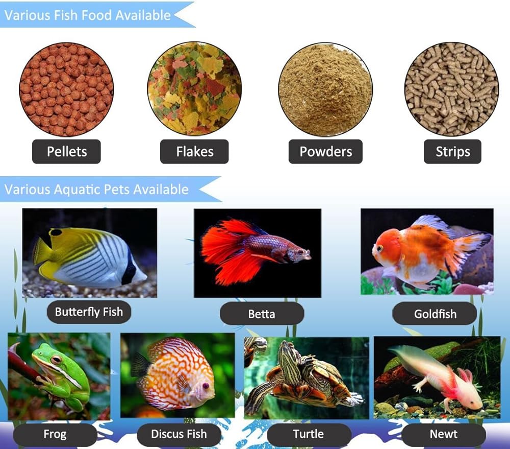 ☞ يونيفيرسيل: 2 × بطارية ايه ايه ايه متضمنة، يمكن أن تدوم لمدة 3 أشهر. يغذي جميع أنواع أطعمة الأسماك، بما في ذلك الرقائق والكريات والمساحيق والشرائط. مثالية لأحواض الأسماك المنزلية وأحواض السمك. يمكنها إطعام معظم أسماك الحيوانات الأليفة والسلاحف والنيوت والضفادع. تنبيه: يرجى اتباع التعليمات لإعداد أوقات الدوران في كل دورة، وإلا لن تعمل وحدة التغذية!