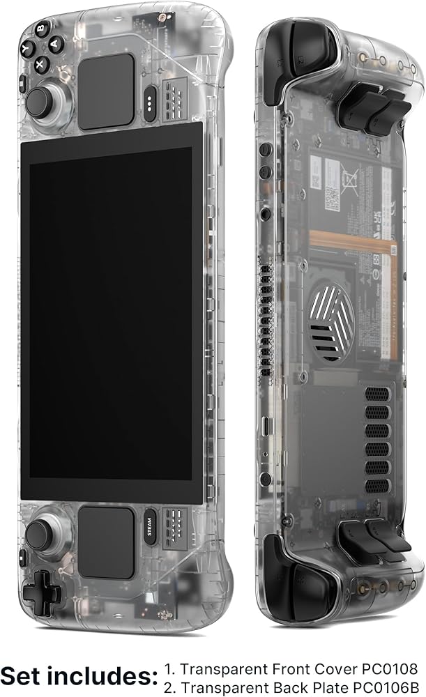 رؤية واضحة للمكونات الداخلية: احصل على رؤية واضحة للمكونات الداخلية لجهاز Steam Deck الخاص بك مع الغطاء الأمامي الشفاف PC0108 واللوحة الخلفية الشفافة PC0106B، واعرض الهندسة المذهلة. بالنسبة إلى المتحمسين الذين يستمتعون بالتخصيص العملي، اتبع مقاطع الفيديو التعليمية والنصوص التعليمية الشاملة للحصول على تجربة DIY مثالية
