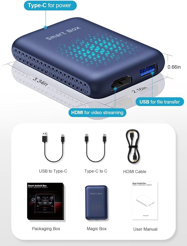 【محول Carplay لاسلكي 3 في 1 】يدعم حل الاتصال اللاسلكي هذا أنظمة 3 في 1، بما في ذلك CarPlay اللاسلكي وAndroid Auto وAndroid 11، لتلبية احتياجات المستخدمين المختلفة. تتيح تقنية Carplay AI BOX 2.0 إمكانية الاتصال اللاسلكي، مما يزيل متاعب الاتصالات السلكية ويوفر تجربة مستخدم أكثر ملاءمة