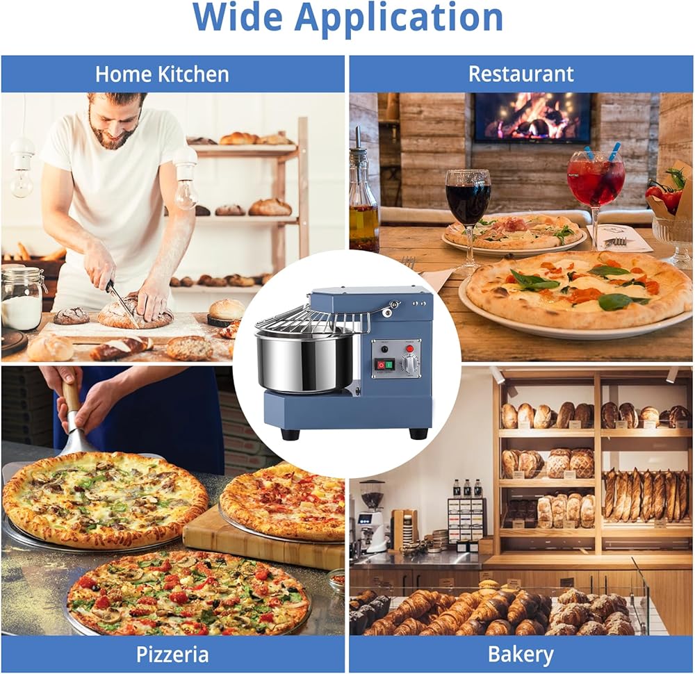 Powerful Dual Rotation: Our commercial dough mixer adopts dual rotation design, which has better kneading effect and higher efficiency. With a 21 r/min bowl and a 159 r/min hook, this food mixer can simulate the manual kneading process and mix the dough more evenly.