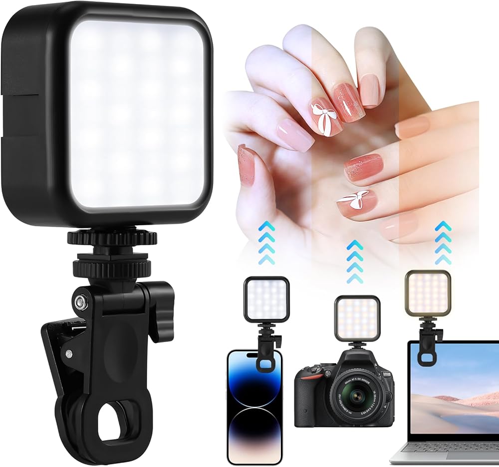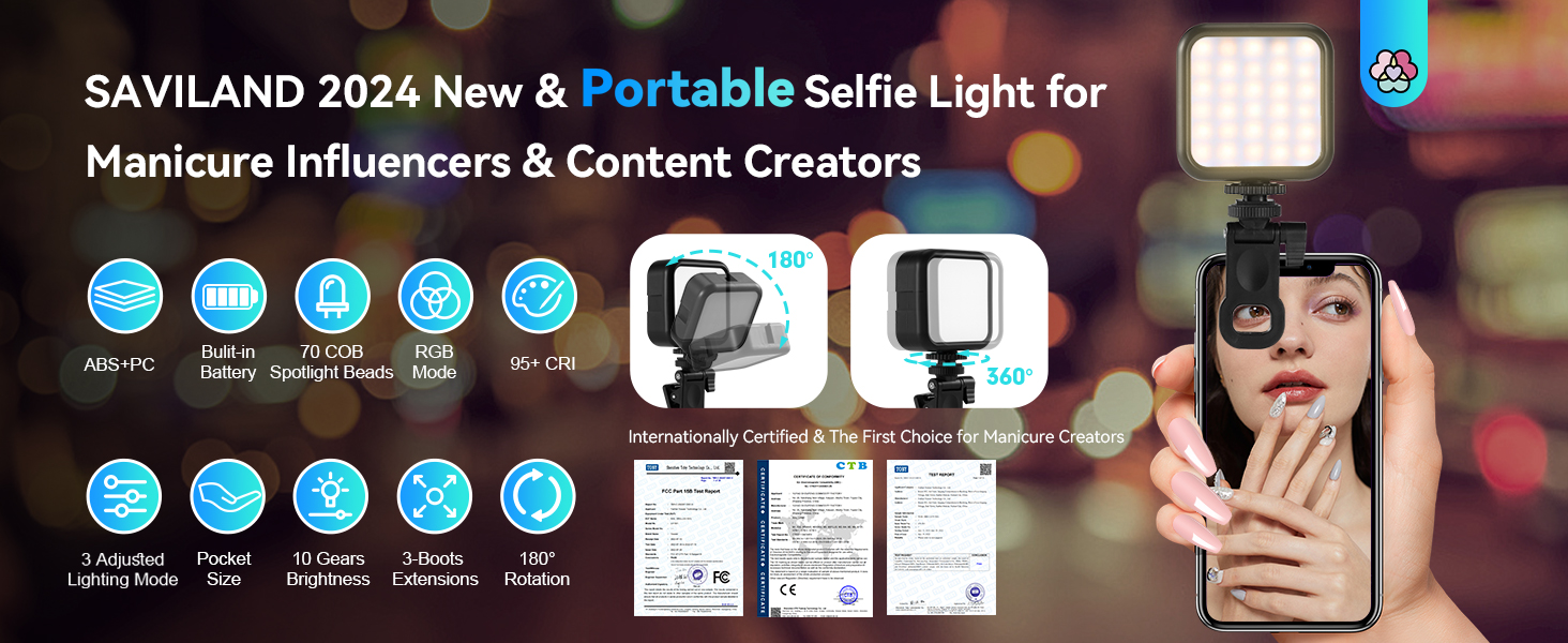 إضاءة سيلفي LED من SAVILAND لصالون الأظافر للهاتف: مشبك محمول وقابل لإعادة الشحن على ضوء سيلفي للهاتف 3 أوضاع إضاءة و10 مستويات سطوع وإضاءة هاتف لأجهزة الكمبيوتر المحمول مسمار الفن Selfie Vlog