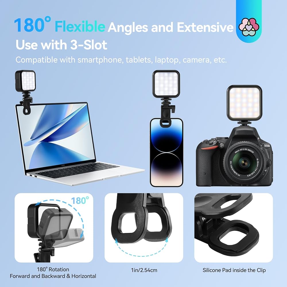 تصميم مرن مع امتداد ثلاثي الفتحات: تسمح فتحات التمديد الثلاث لمصباح السيلفي سافيلاند بمزيج أسهل من تكوينات الإضاءة المختلفة لتعزيز السطوع في أي سيناريو تصوير، مما يضمن إضاءة مثالية لتفاصيل الأظافر. يأتي مزودًا بمشبك زنبركي قابل للدوران 180 درجة مناسب للشاشات وأجهزة الكمبيوتر المحمولة والهواتف والأجهزة اللوحية. مثالي لإنتاج صور فوتوغرافية عالية الجودة لفن الأظافر ومقاطع فيديو حية على منصات مثل Facebook وYouTube وTwitter وTikTok وما إلى ذلك