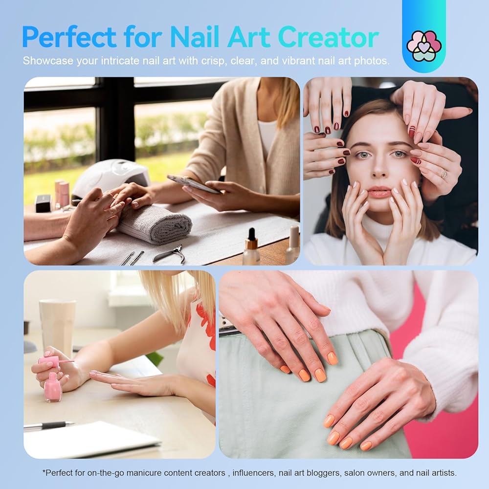 تعزيز صور الأظافر والإضاءة الاحترافية: التقط صور أظافر مذهلة تبرز على وسائل التواصل الاجتماعي، خاصة لمدوني فن الأظافر، والمؤثرين، ومنشئي محتوى الأظافر، ومالك الصالون وفنان الأظافر. القضاء على الظلال والتناقضات الناجمة عن الضوء الطبيعي. اعرض فن الأظافر المعقد الخاص بك من خلال صور فن الأظافر الواضحة والواضحة والنابضة بالحياة