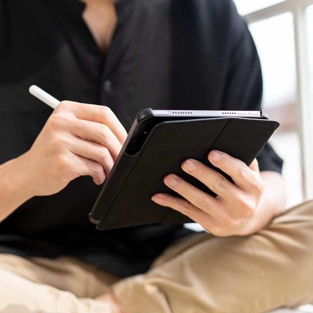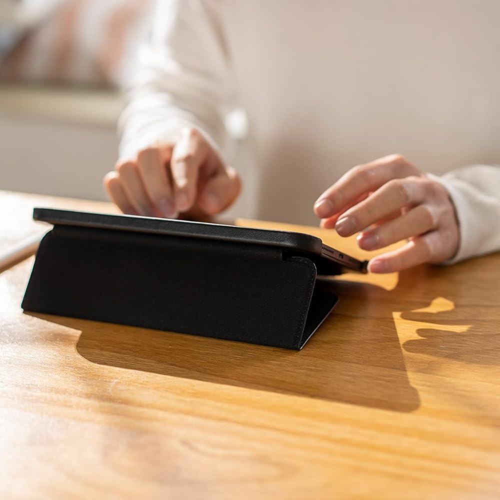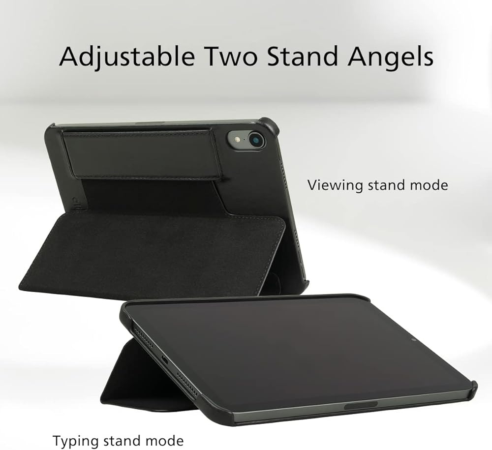 [ادعم جهاز iPad الخاص بك بشكل آمن] اقلب الجلد للخلف لجعل iPad mini في وضع مستقيم بشكل آمن. يمكنك التغيير من الكتابة إلى زوايا المشاهدة.