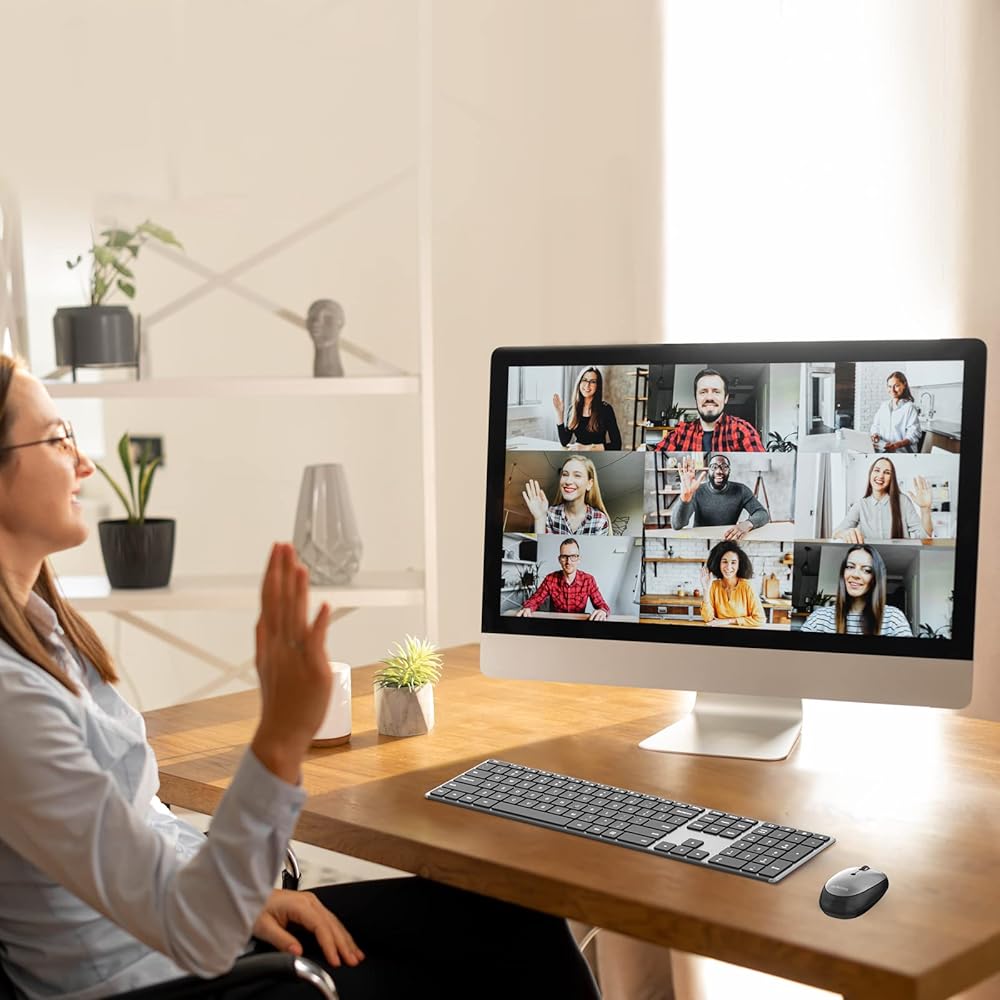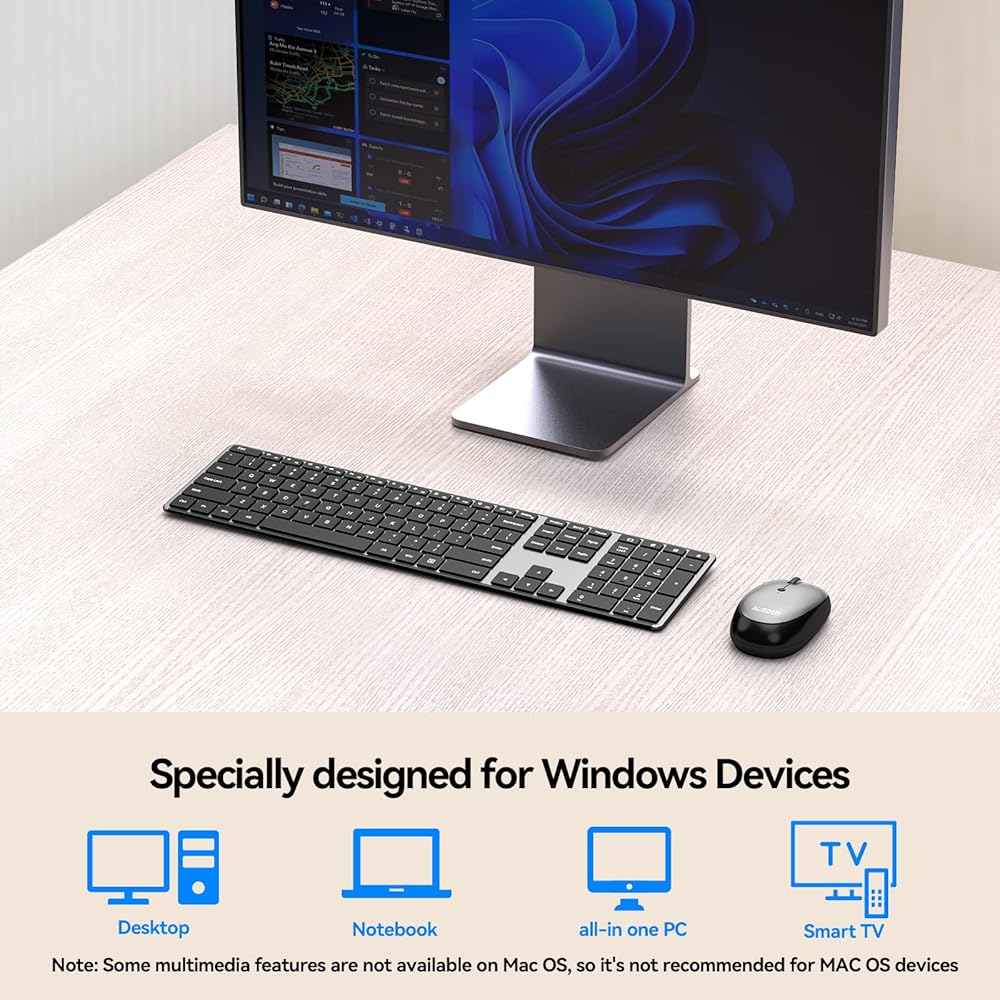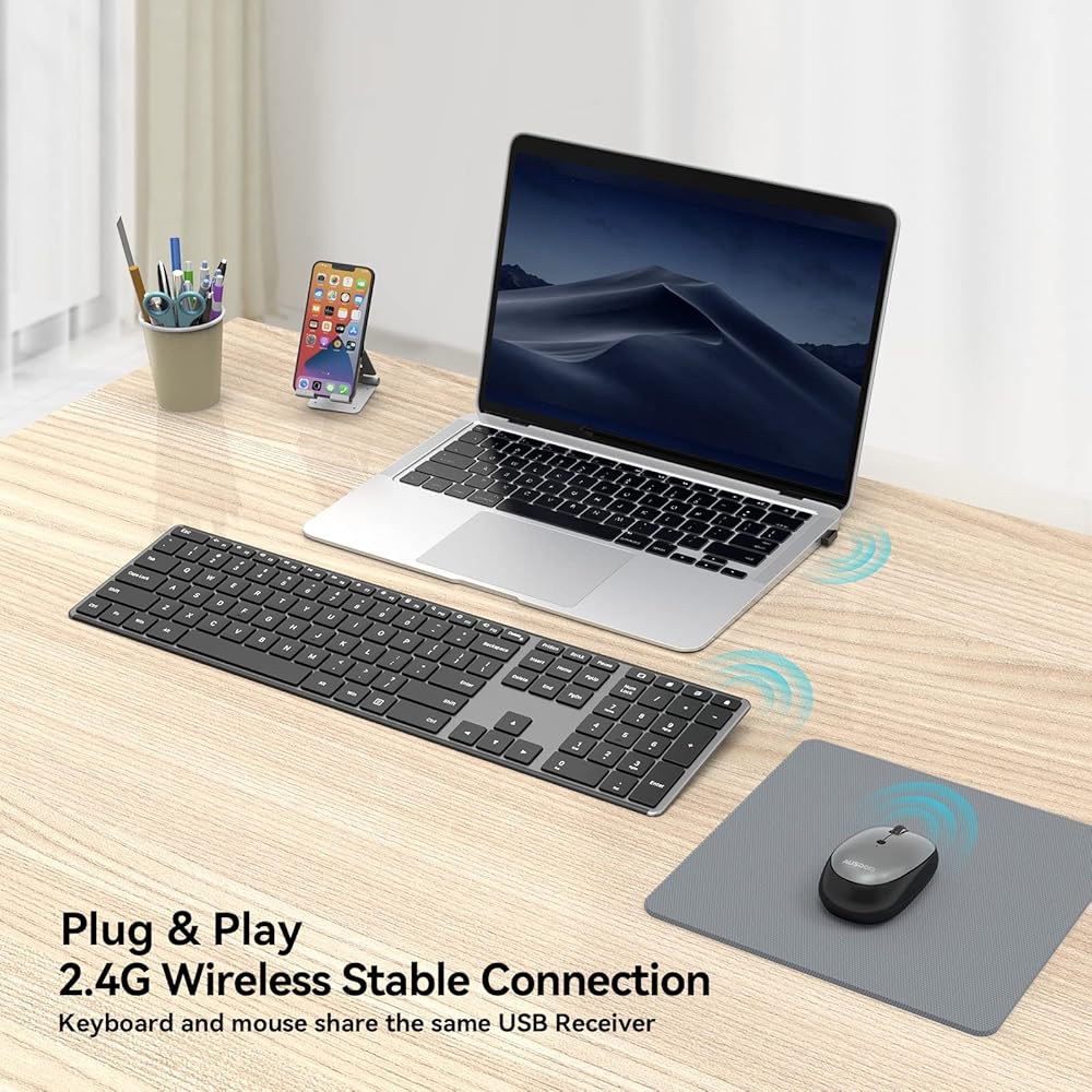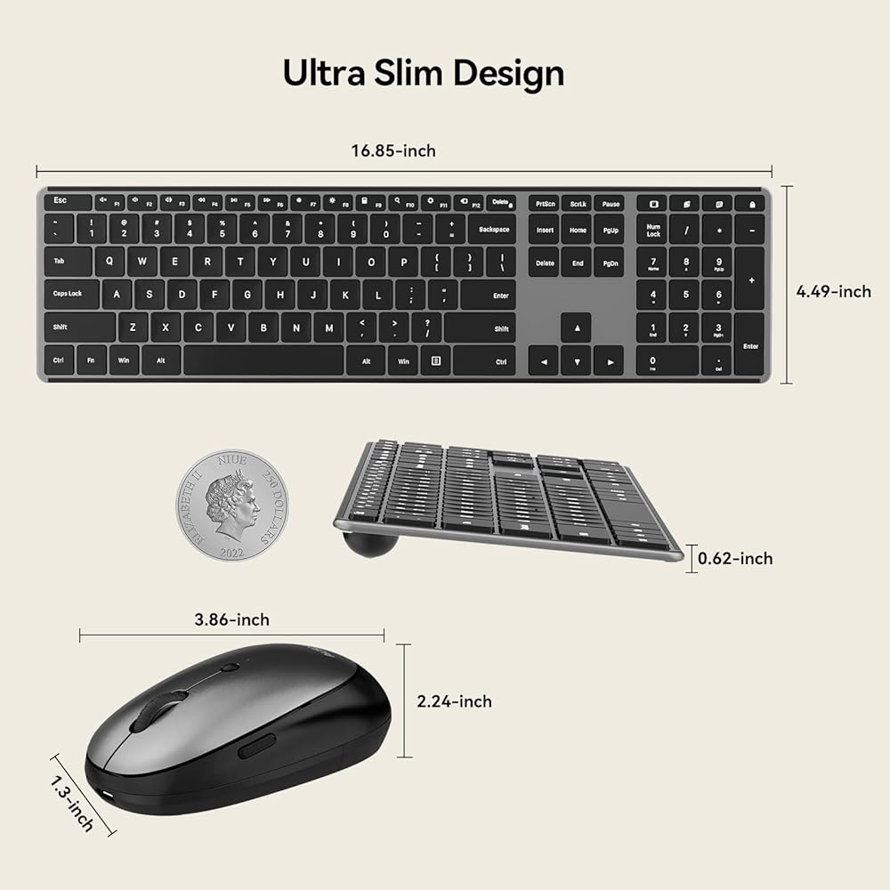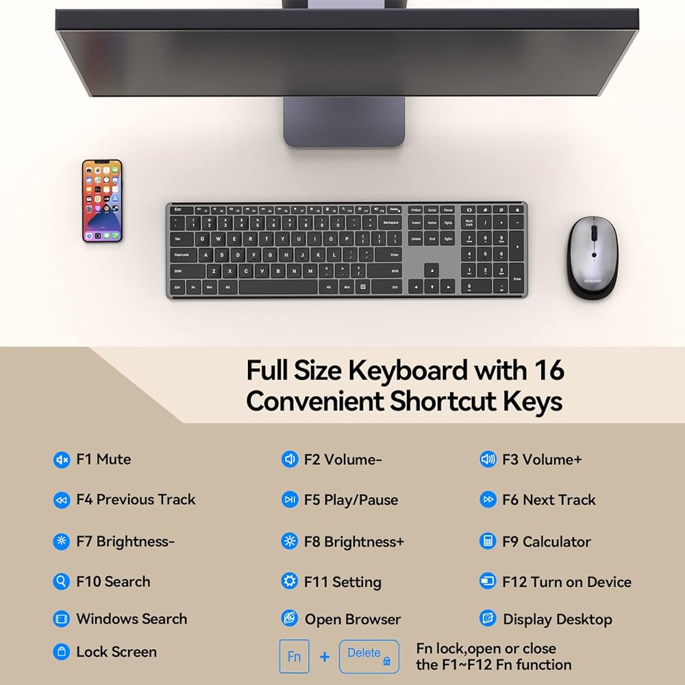 لوحة مفاتيح رفيعة للغاية وكاملة الحجم: تضيف لوحة المفاتيح الرفيعة للغاية، بسمك 0.62 بوصة فقط، الأناقة إلى مكتبك. توفر لوحة المفاتيح اللاسلكية كاملة الحجم 16 مفتاح اختصار ولوحة مفاتيح رقمية لإدخال البيانات بكفاءة.