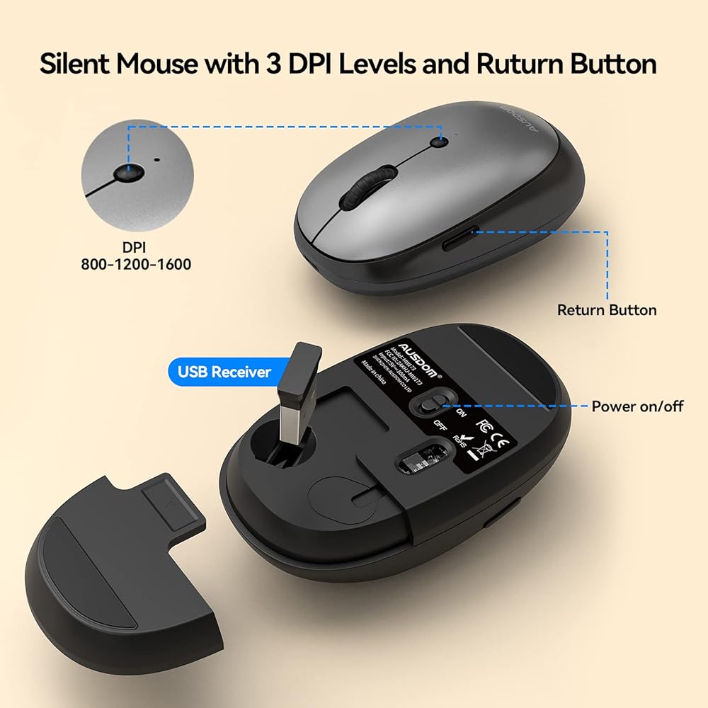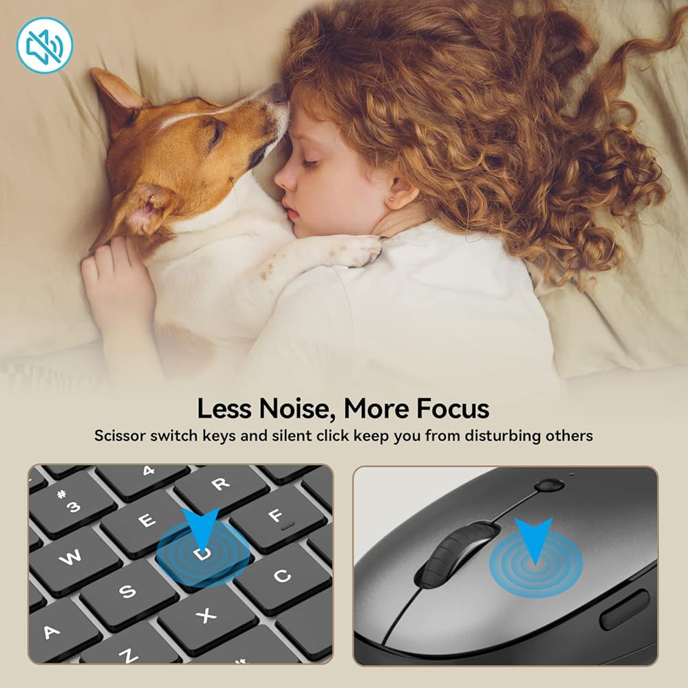 كتابة مريحة و3 مستويات DPI: تضمن لوحة المفاتيح ذات مفتاح المقص الصامت كتابة دقيقة ومريحة وهادئة. اضبط حساسية المؤشر بثلاثة مستويات DPI (800/1200/1600) لتحقيق تتبع أكثر سلاسة.