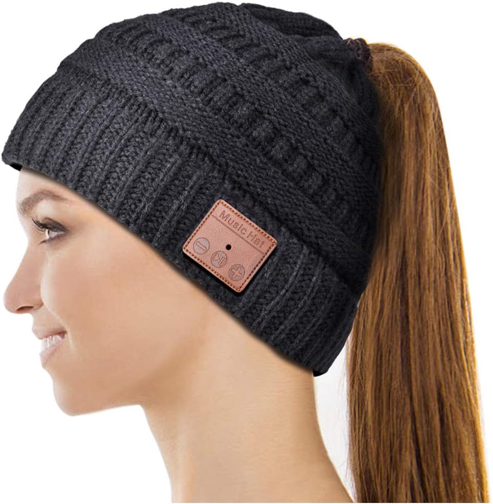 هدايا نسائية لعيد الميلاد المجيد، قبعة صغيرة بلوتوث للنساء: قبعة بلوتوث على شكل ذيل حصان مع سماعات رأس بلوتوث، قبعة شتوية، أفكار هدية عيد ميلاد لزوجتها وأمها والنساء اللاتي لديهن كل شيء