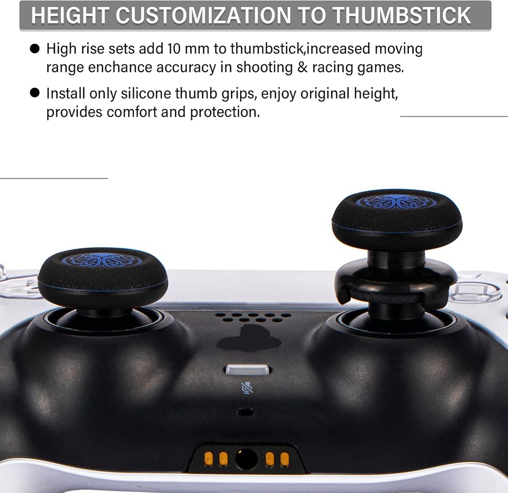 • Different Height Options - Install extender & grips sets adds 10 mm height to the stick, enhances precision in shooting, racing games. Install only silicone thumb grips, enjoy original height and ideal comfort and protection;